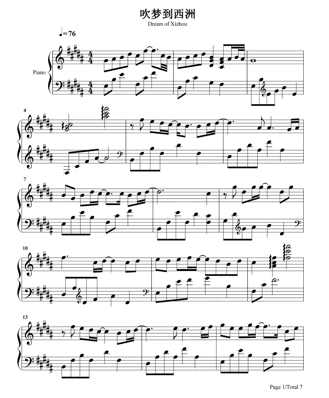 黄诗扶《吹梦到西洲》钢琴谱附简谱...