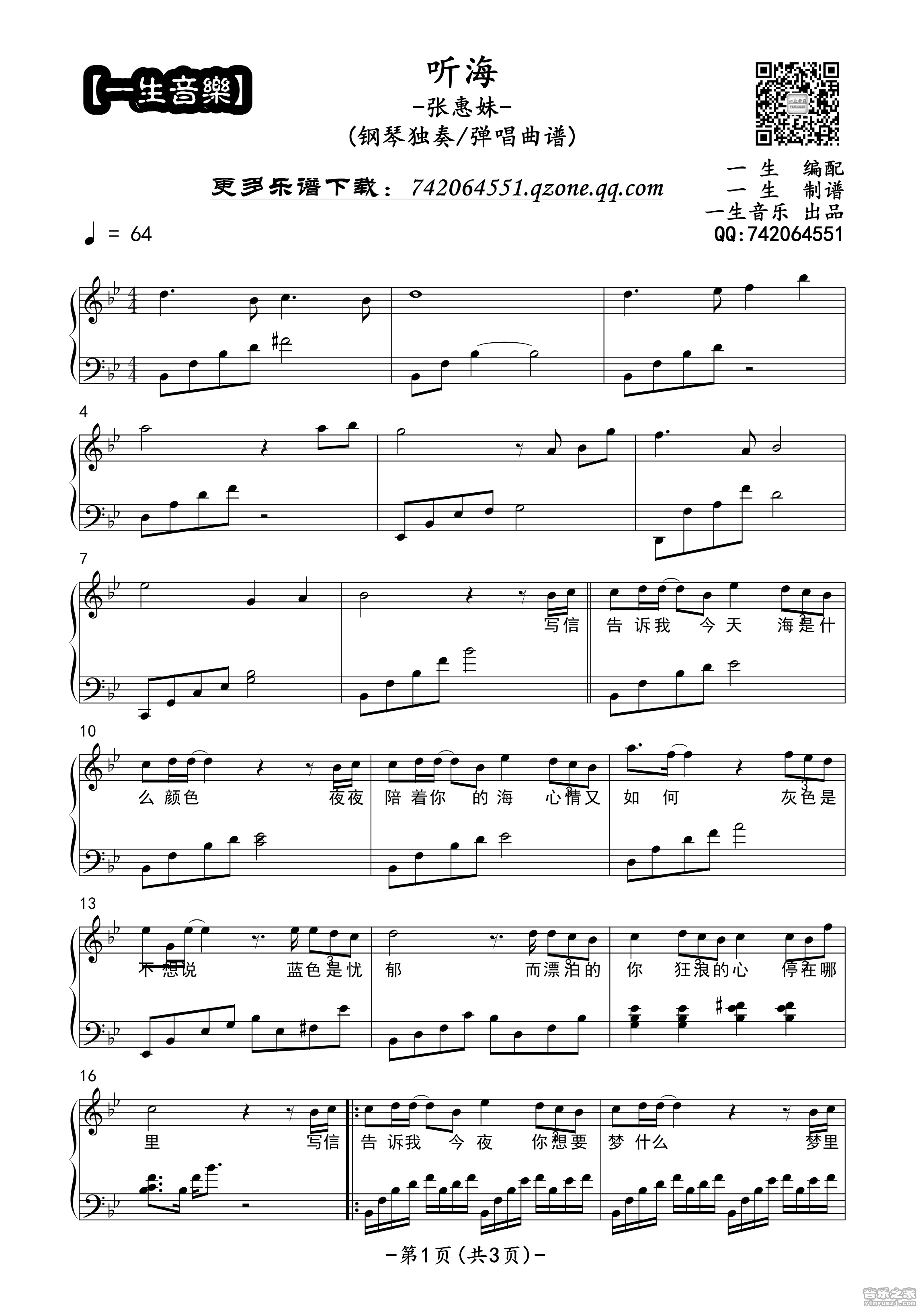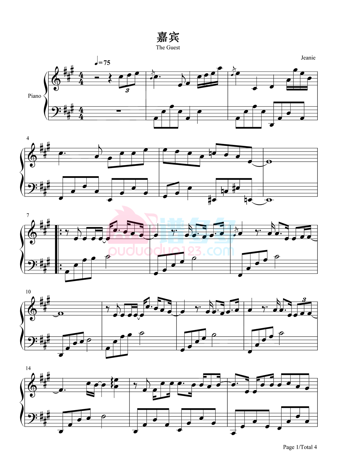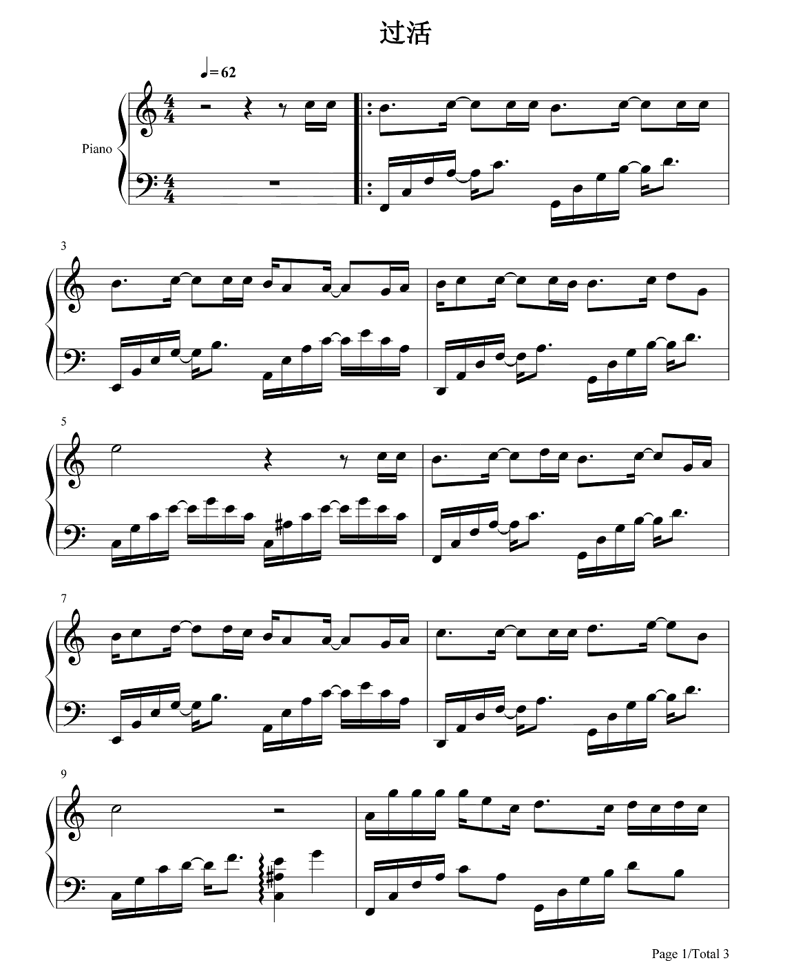 抖音热歌《过活》钢琴谱,采用10调指法编配,共有3张高清图谱。...