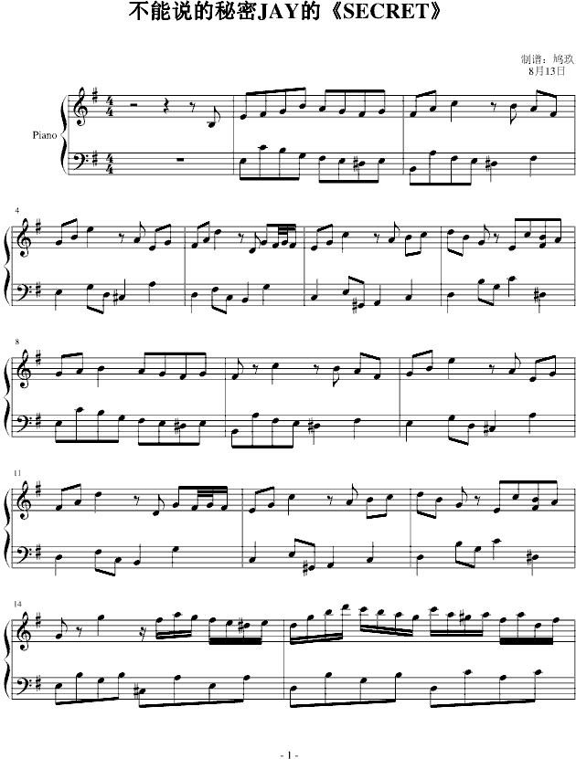 不能说的秘密钢琴谱-周杰伦《SECRET》-鸠玖版...