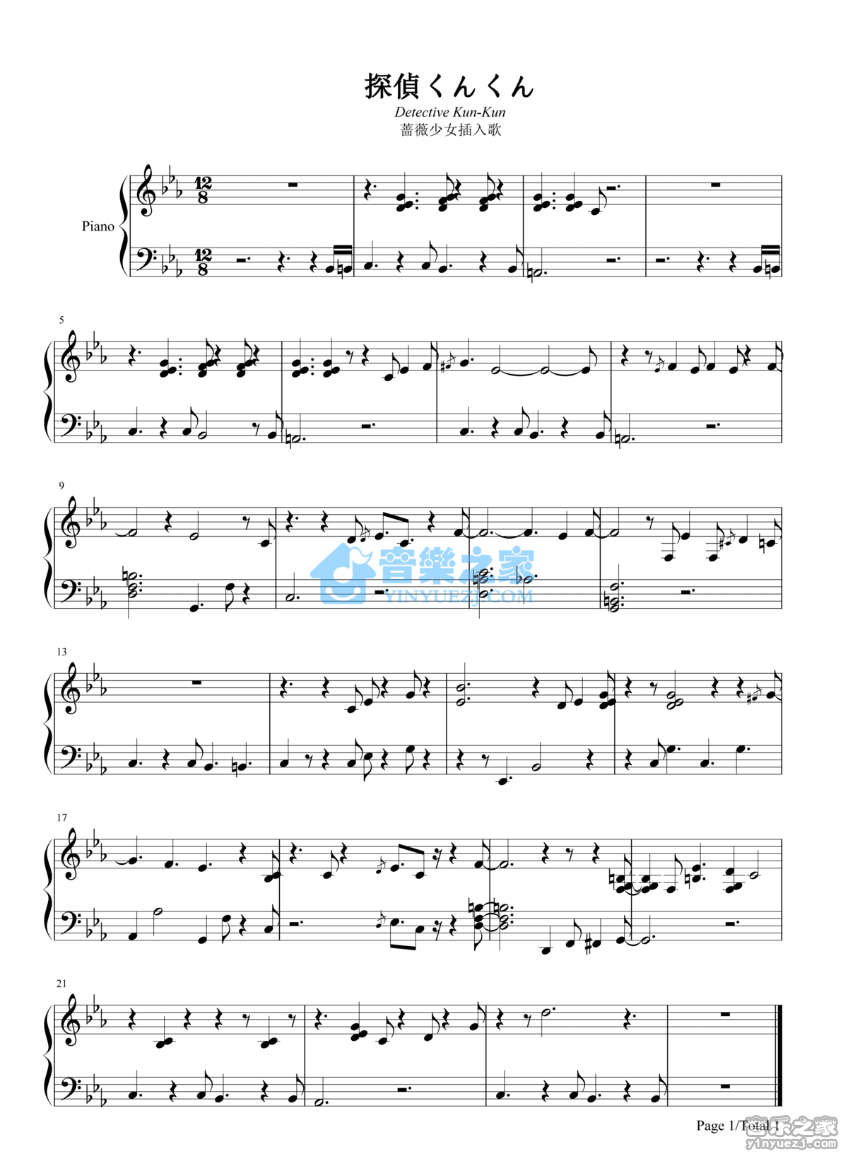 蔷薇少女插入歌《探偵くんくん》钢琴五线谱...
