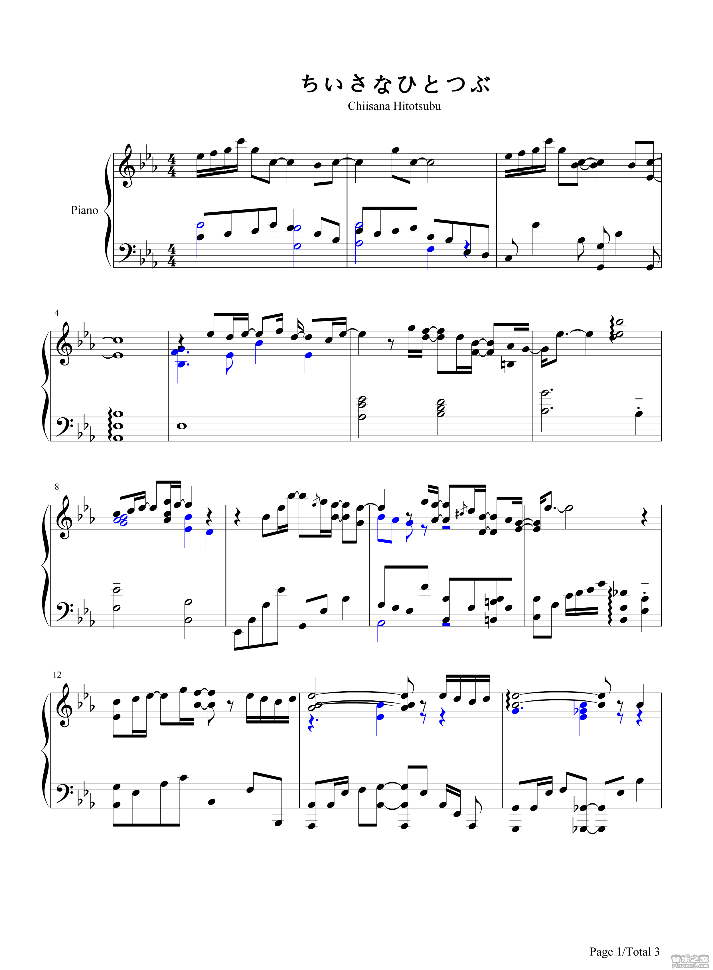 钢琴安野希世乃《ちいさなひとつぶ》钢琴五线谱