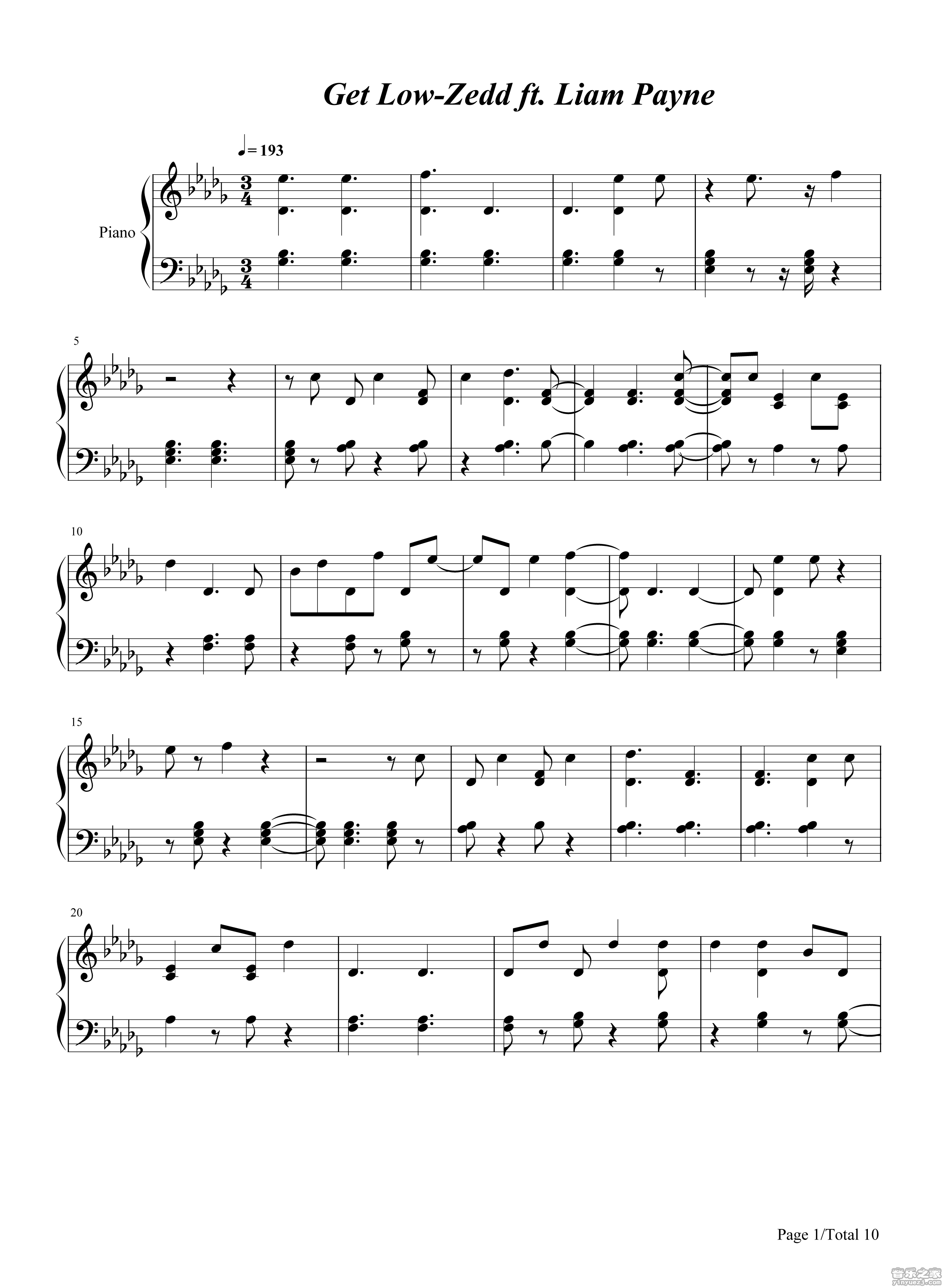 Zedd/LiamPayne《GetLow》钢琴五线谱...