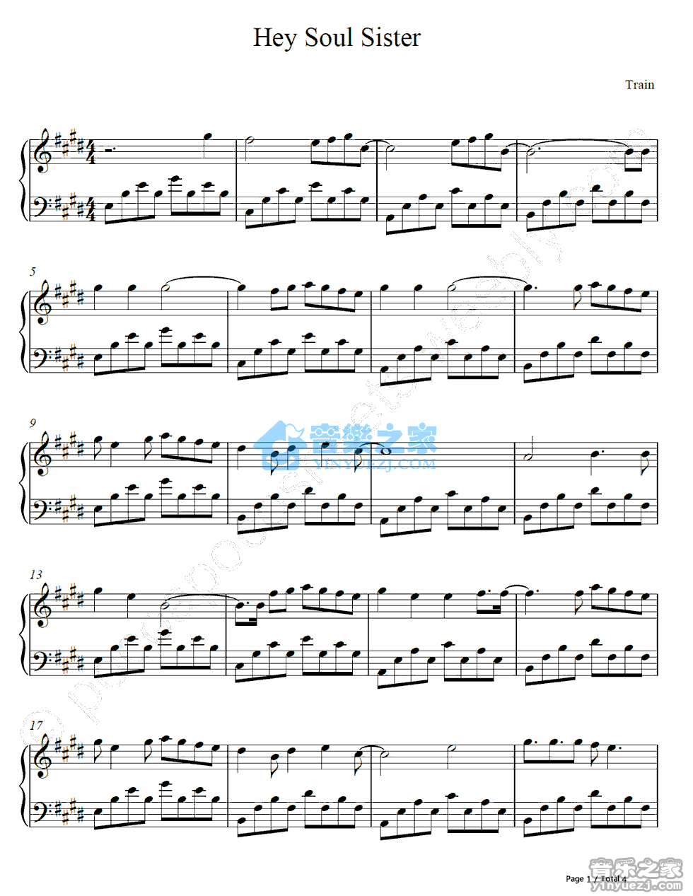 钢琴Train《Hey Soul Sister》钢琴五线谱