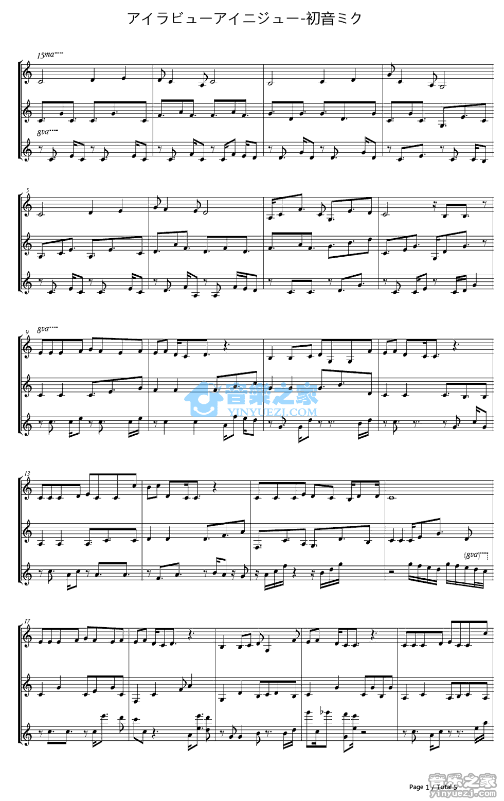 初音ミク《アイラビューアイニジュー伴奏》钢琴五线谱...
