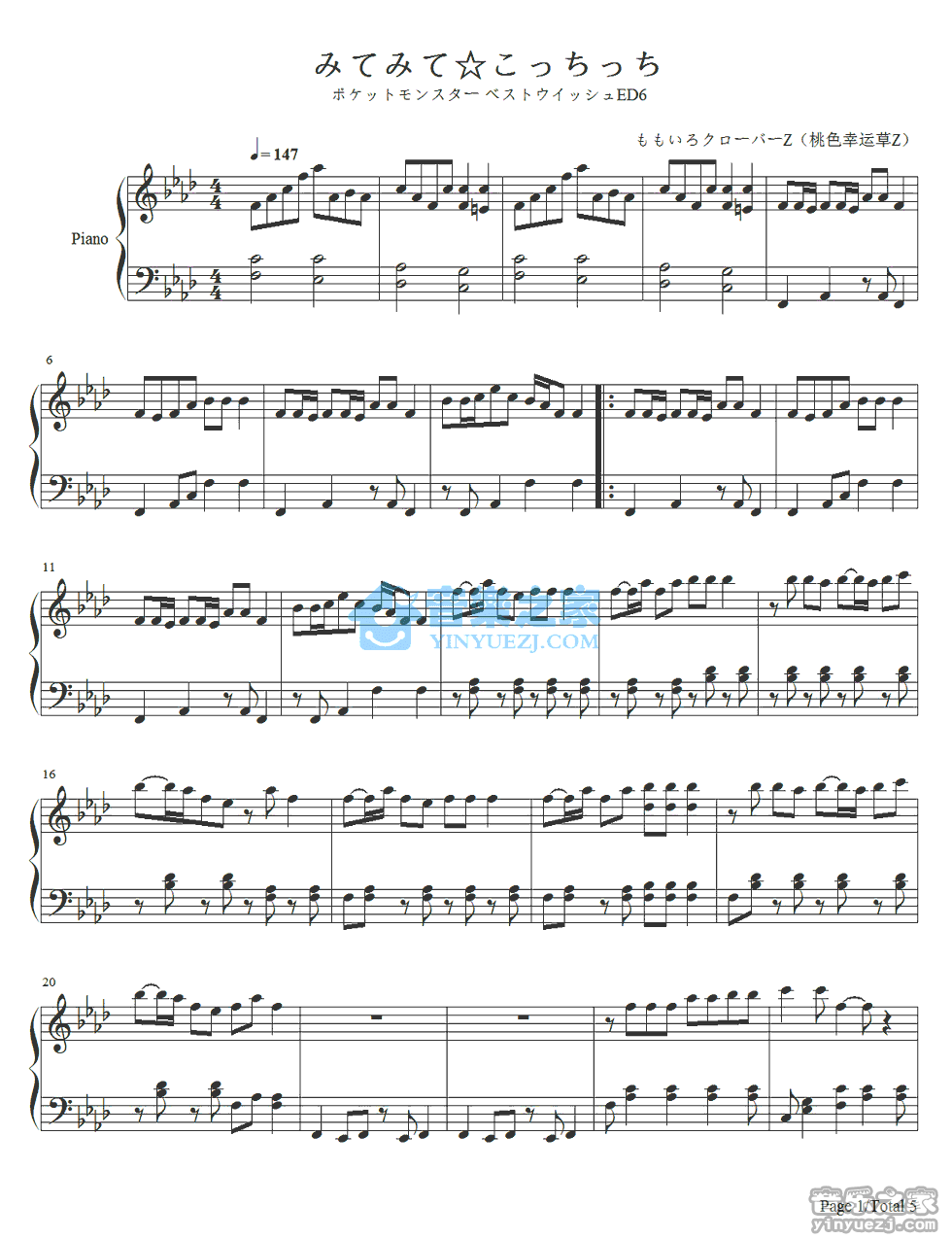 桃色幸运草Z《みてみて☆こっちっち》钢琴五线谱...