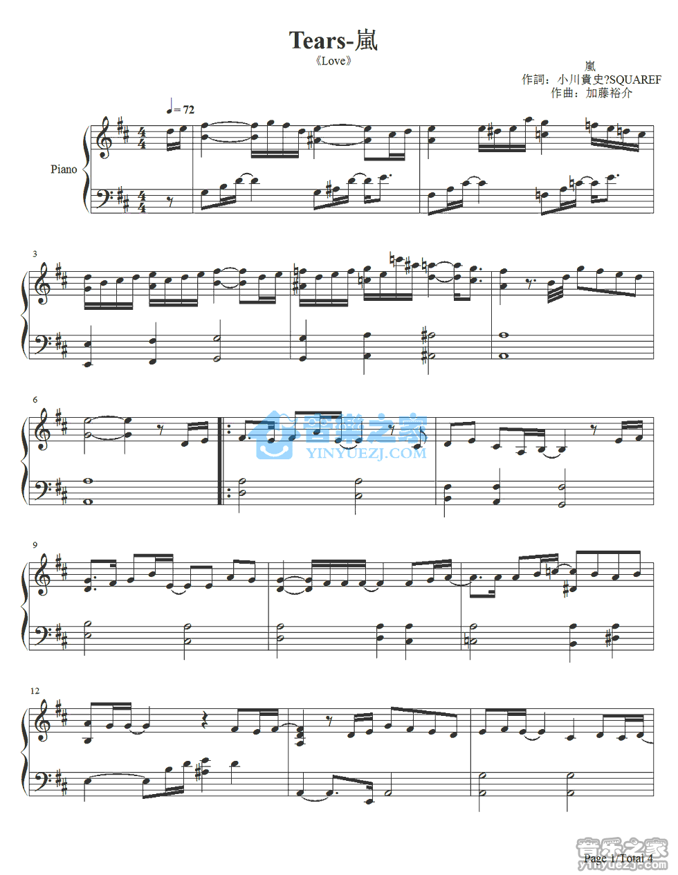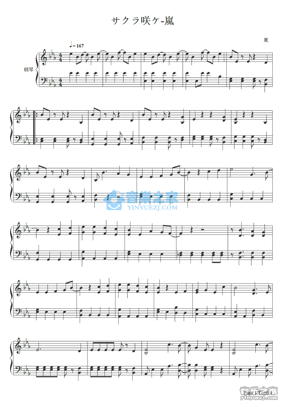 钢琴岚《サクラ咲ケ》钢琴五线谱