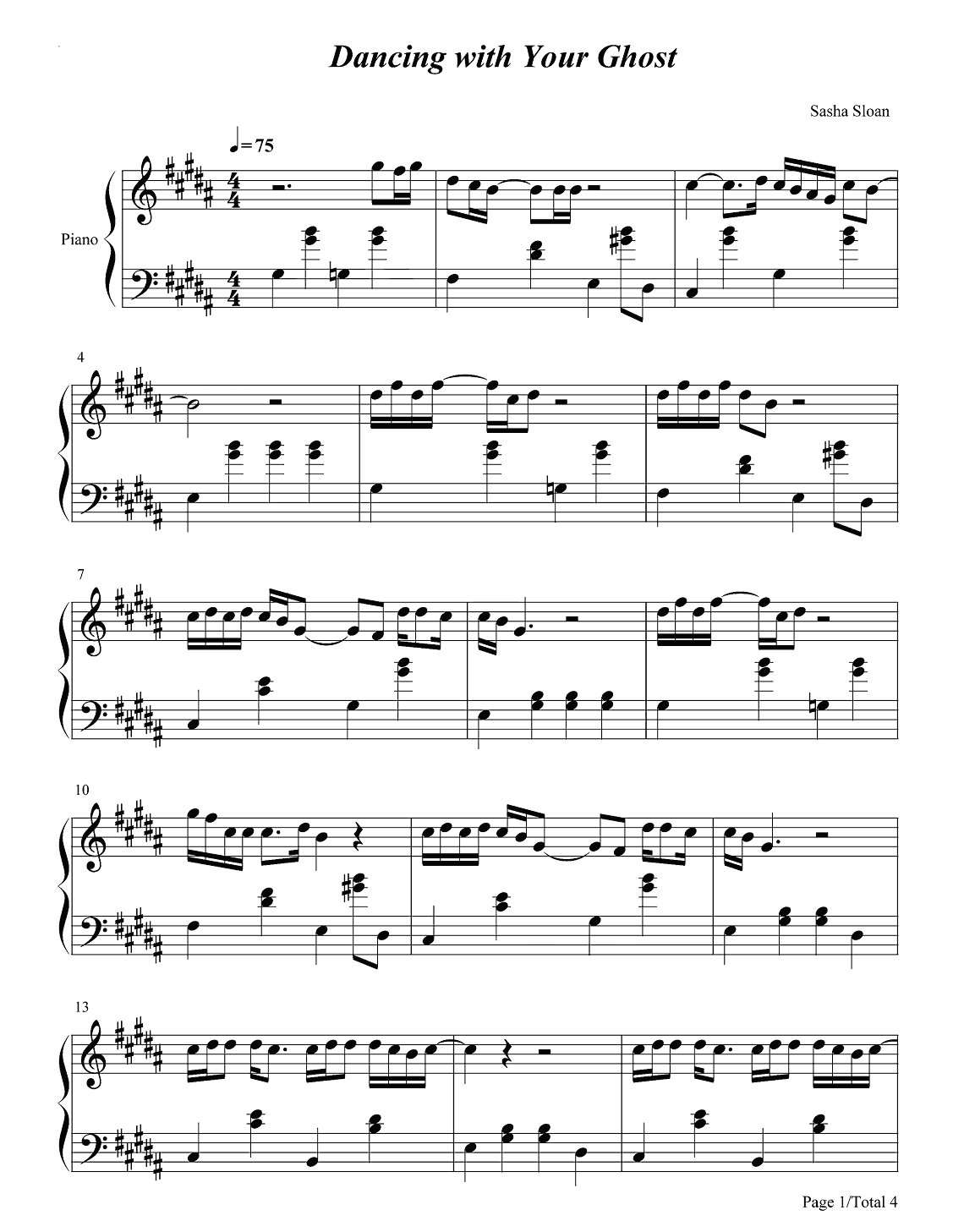 抖音热歌《DancingwithYourGhost》钢琴谱,采用C调指法编配,共有4张高清图谱。...