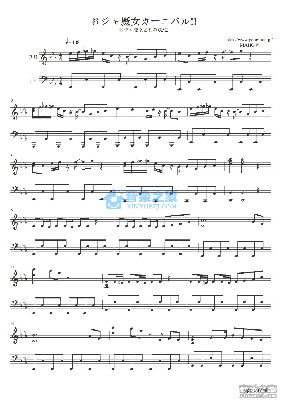 钢琴MAHO堂《おジャ魔女カーニバル!!》钢琴五线谱