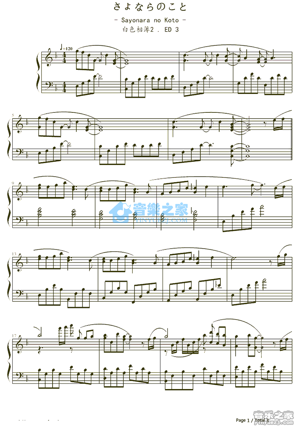 钢琴 上原れな《さよならのこと》钢琴五线谱