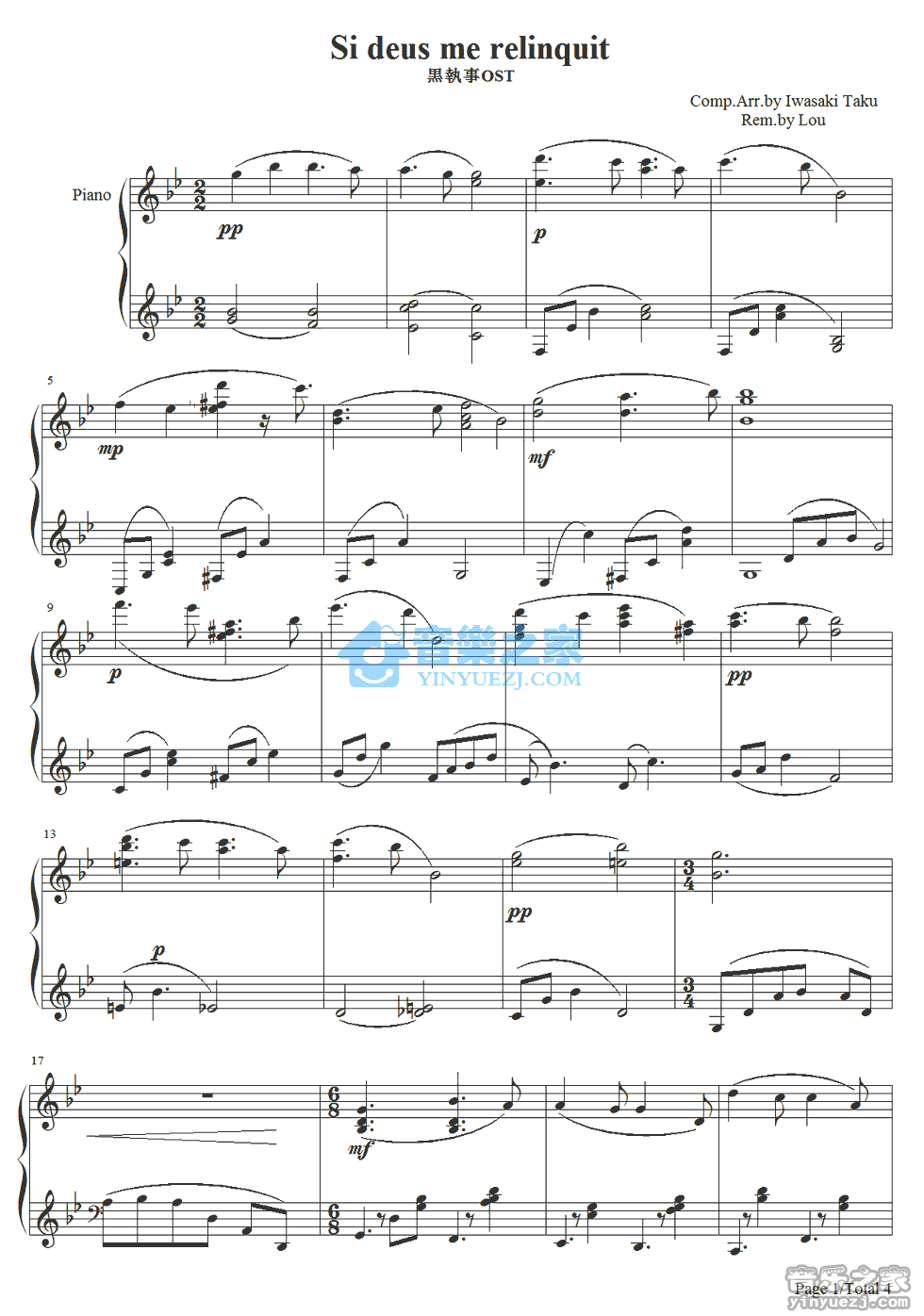 钢琴《Si Deus Me Relinquit》钢琴五线谱