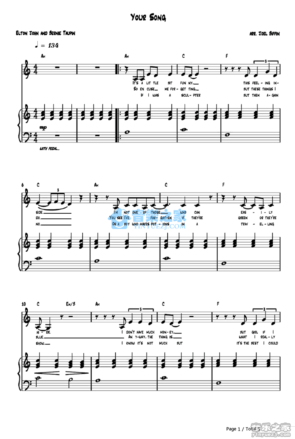 钢琴Ellie Goulding《Your Song》钢琴五线谱