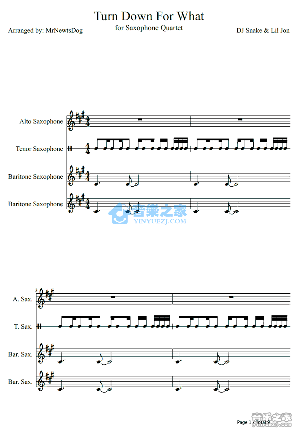 DJSnake/LilJon《TurnDownforWhat》钢琴五线谱...