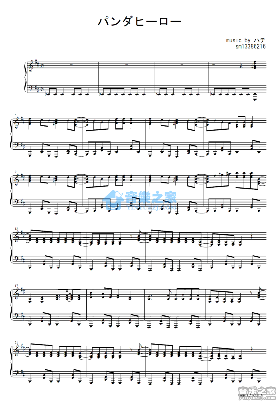 钢琴 GUMI《パンダヒーロー》钢琴五线谱