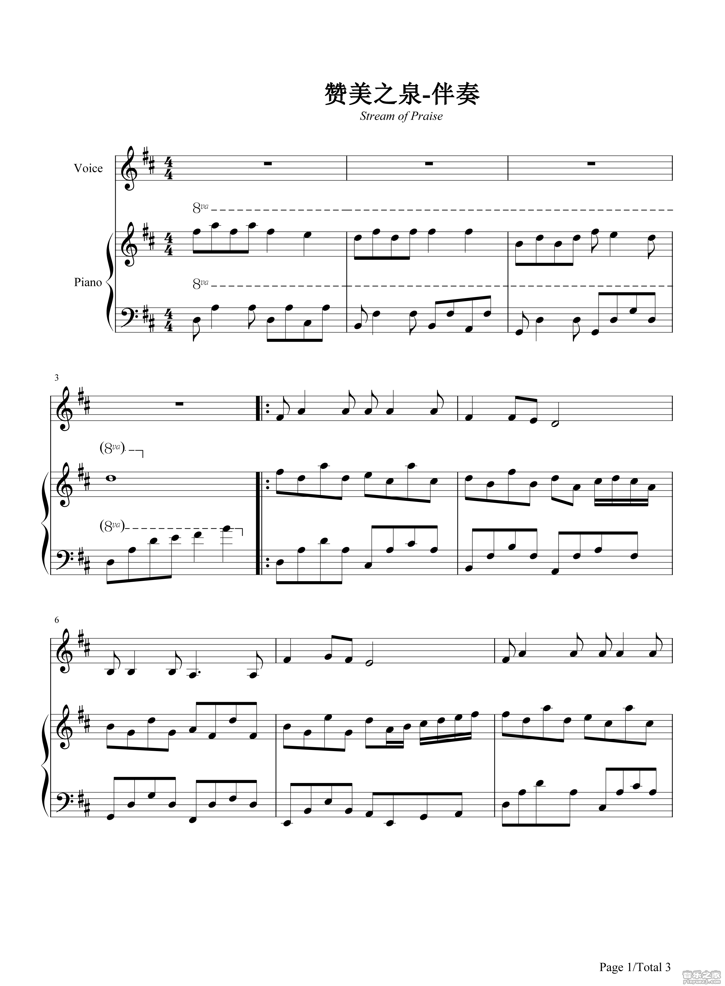 游智婷《赞美之泉》钢琴谱,采用C调指法编配,共有3张高清图谱。...