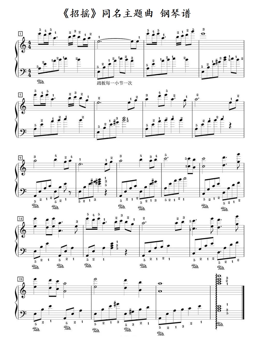 钢琴陈楚生、胡莎莎《招摇》同名主题曲 钢琴谱