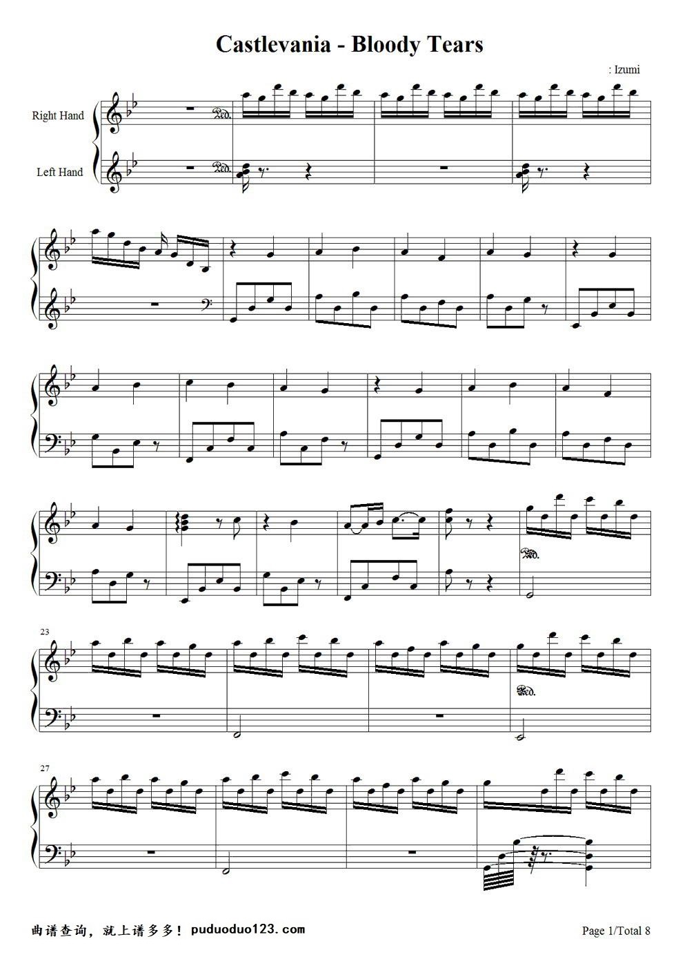 Castlevania《bloodytears》钢琴谱...