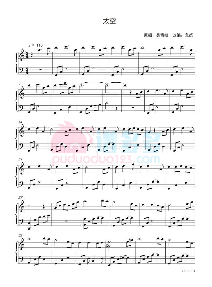 吴青峰《太空》钢琴谱...