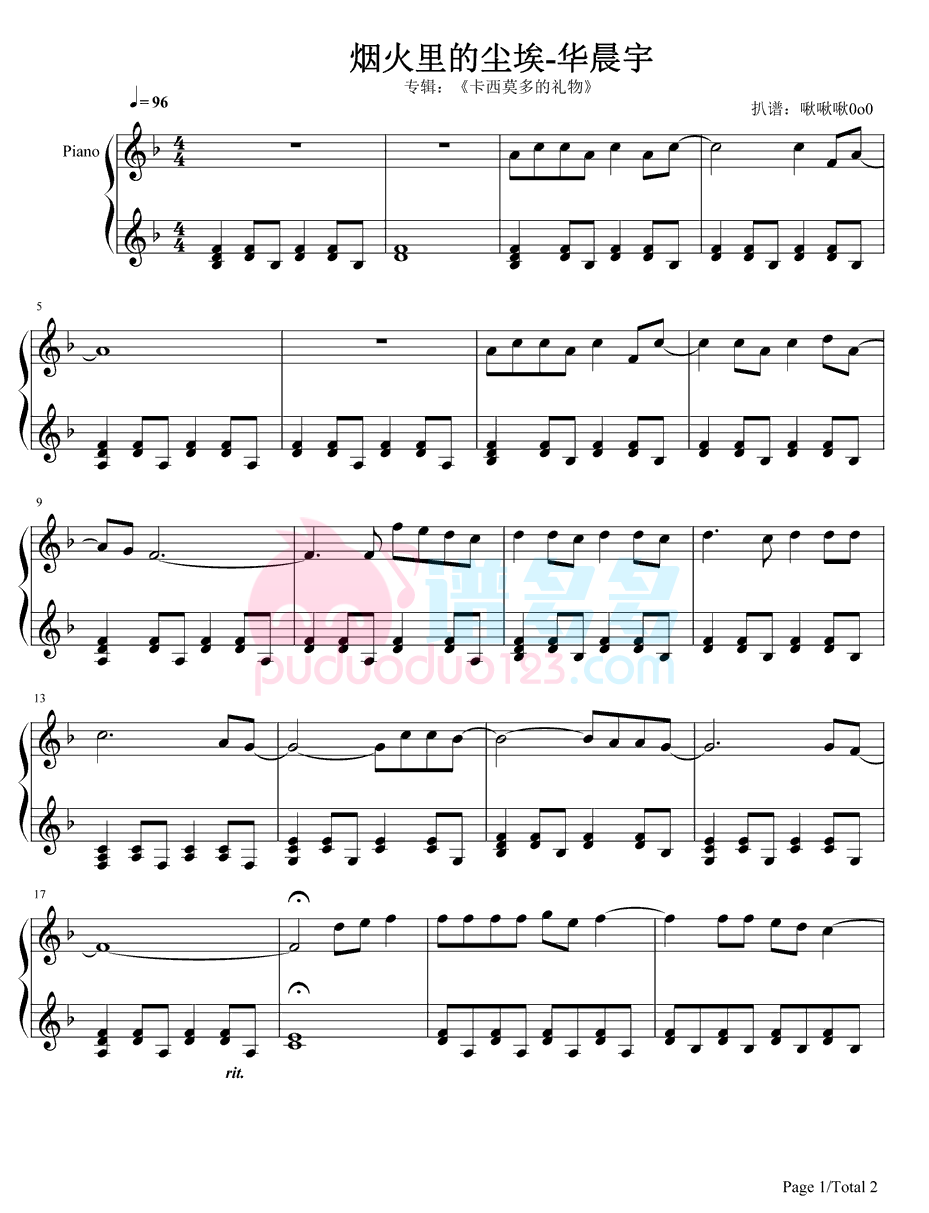 华晨宇《烟火里的尘埃》钢琴谱...