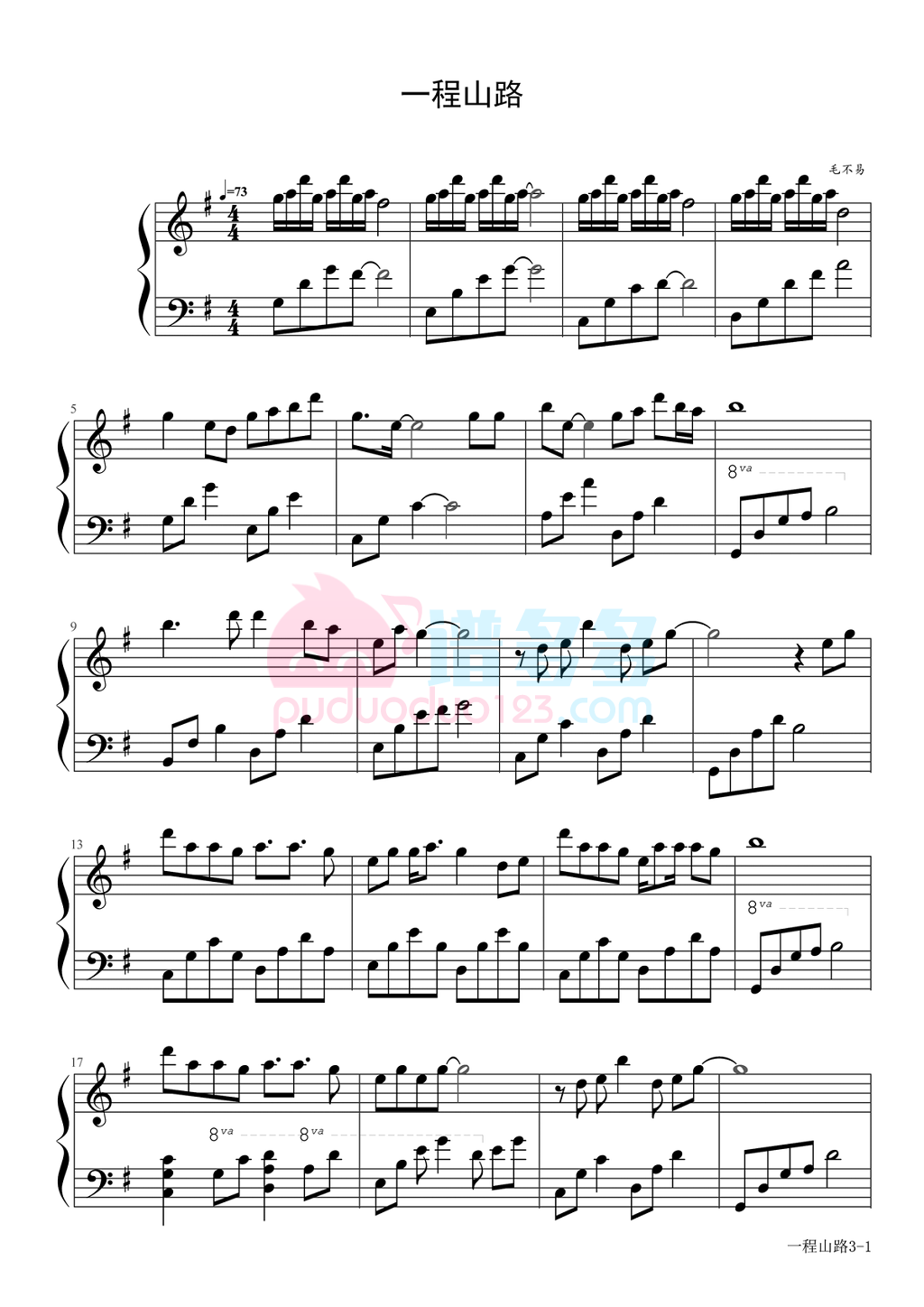 毛不易《一程山路》钢琴谱...
