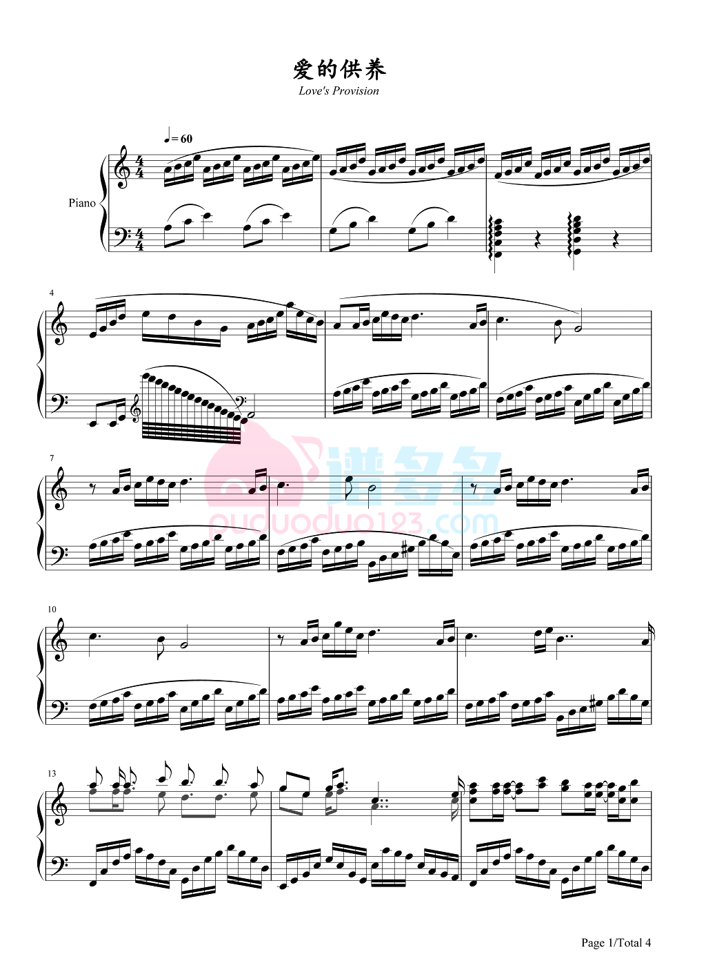 钢琴杨幂《爱的供养》钢琴谱