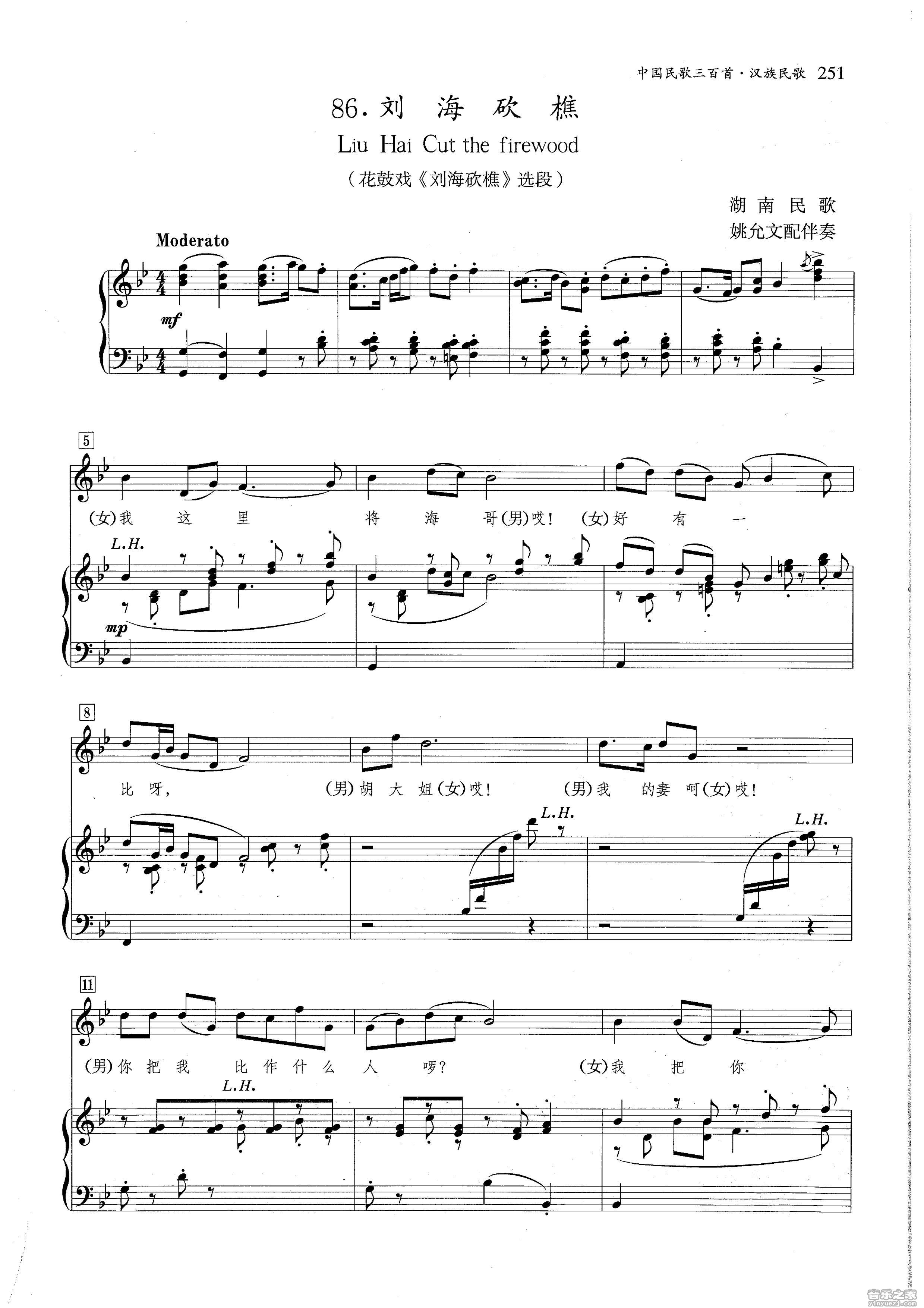 《刘海砍樵》钢琴谱,采用C调指法编配,共有4张高清图谱。...