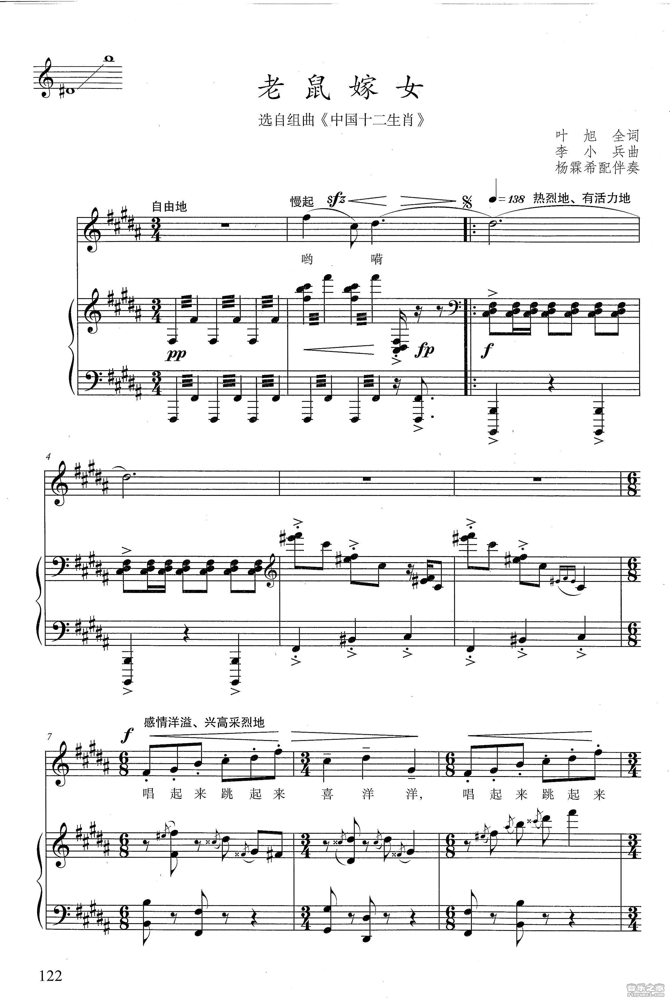 杨霖希版陈笠笠《老鼠嫁女》钢琴谱,采用C调指法编配,共有5张高清图谱。...
