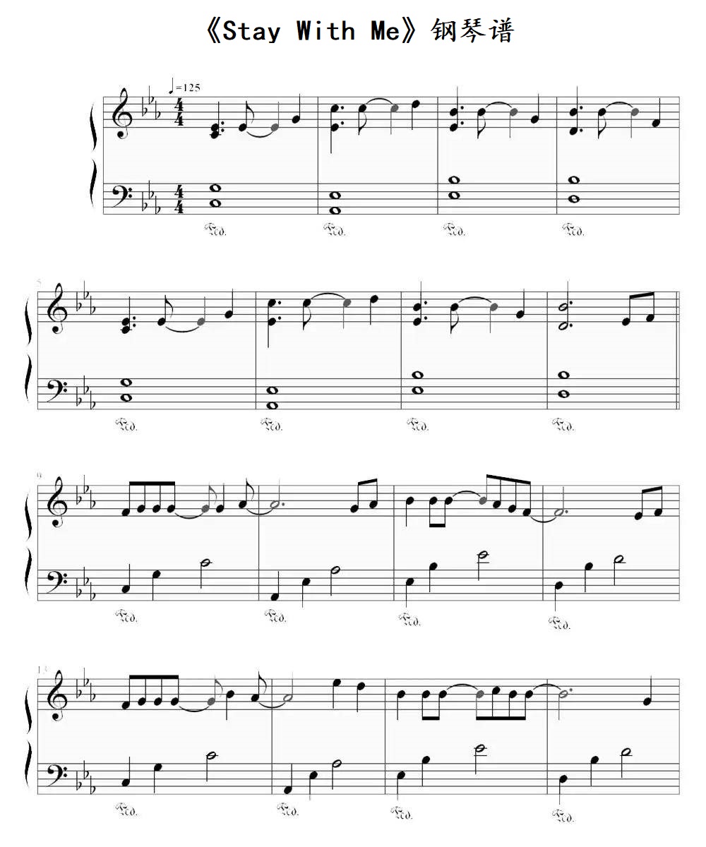 钢琴朴灿烈、Punch《Stay With Me》钢琴谱
