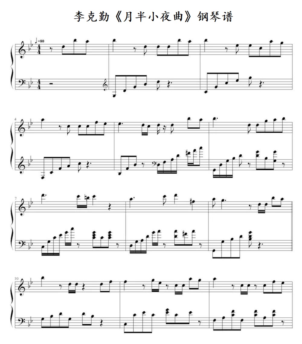 李克勤《月半小夜曲》钢琴谱,采用11调指法编配,共有5张高清图谱。...