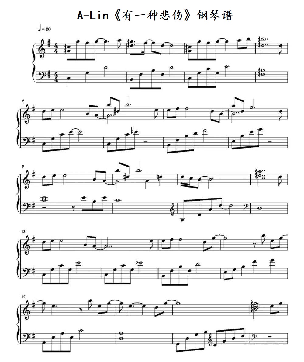 钢琴A-Lin《有一种悲伤》钢琴谱