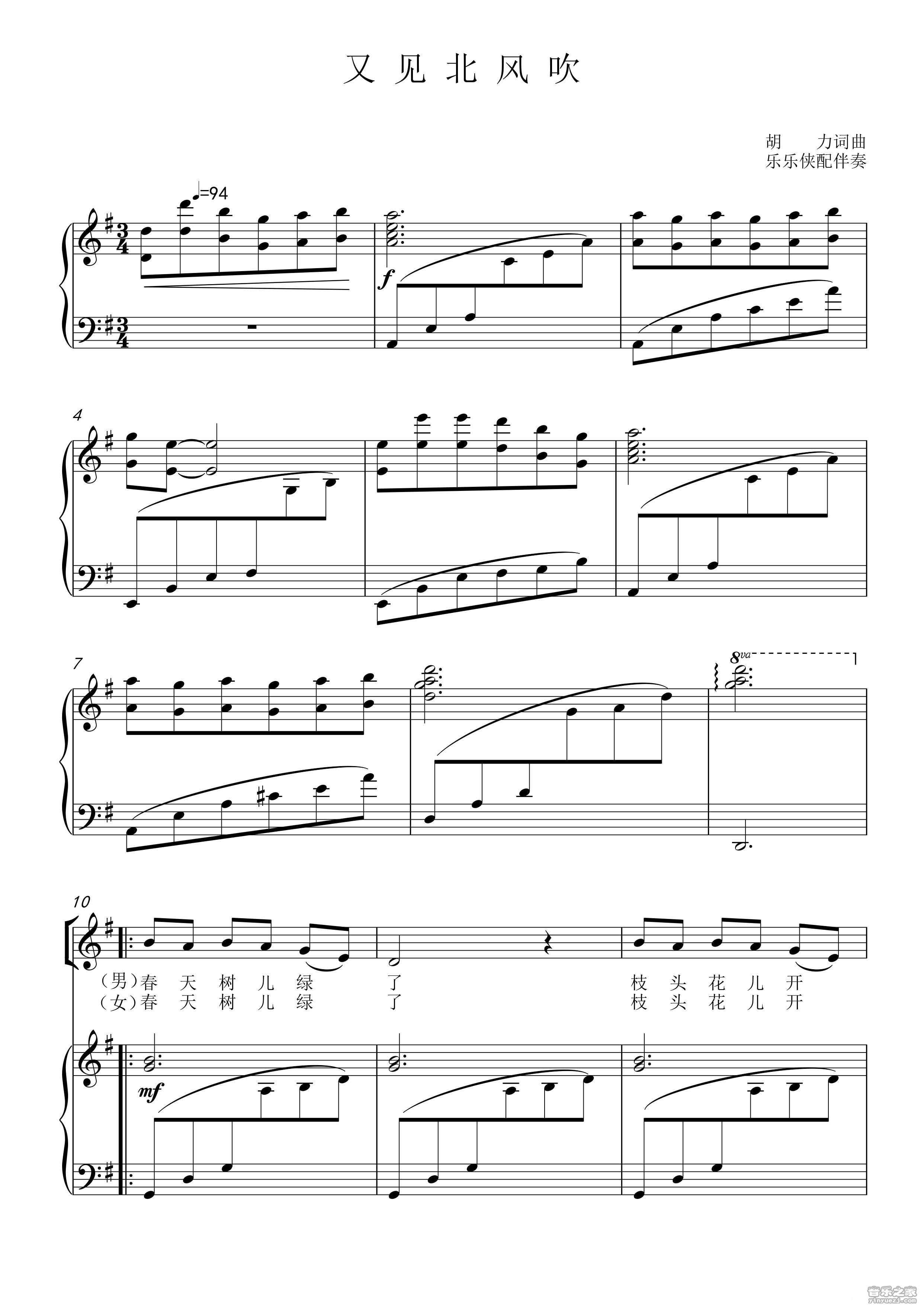 钢琴胡大亮/王二妮《又见北风吹》钢琴正谱
