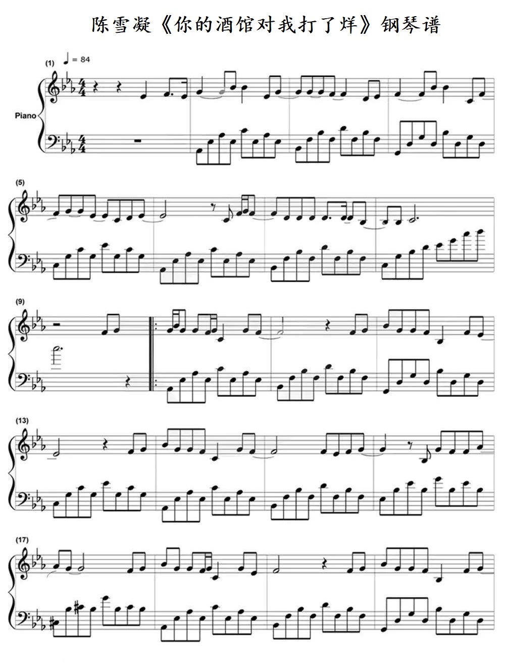 钢琴陈雪凝《你的酒馆对我打了烊》钢琴谱