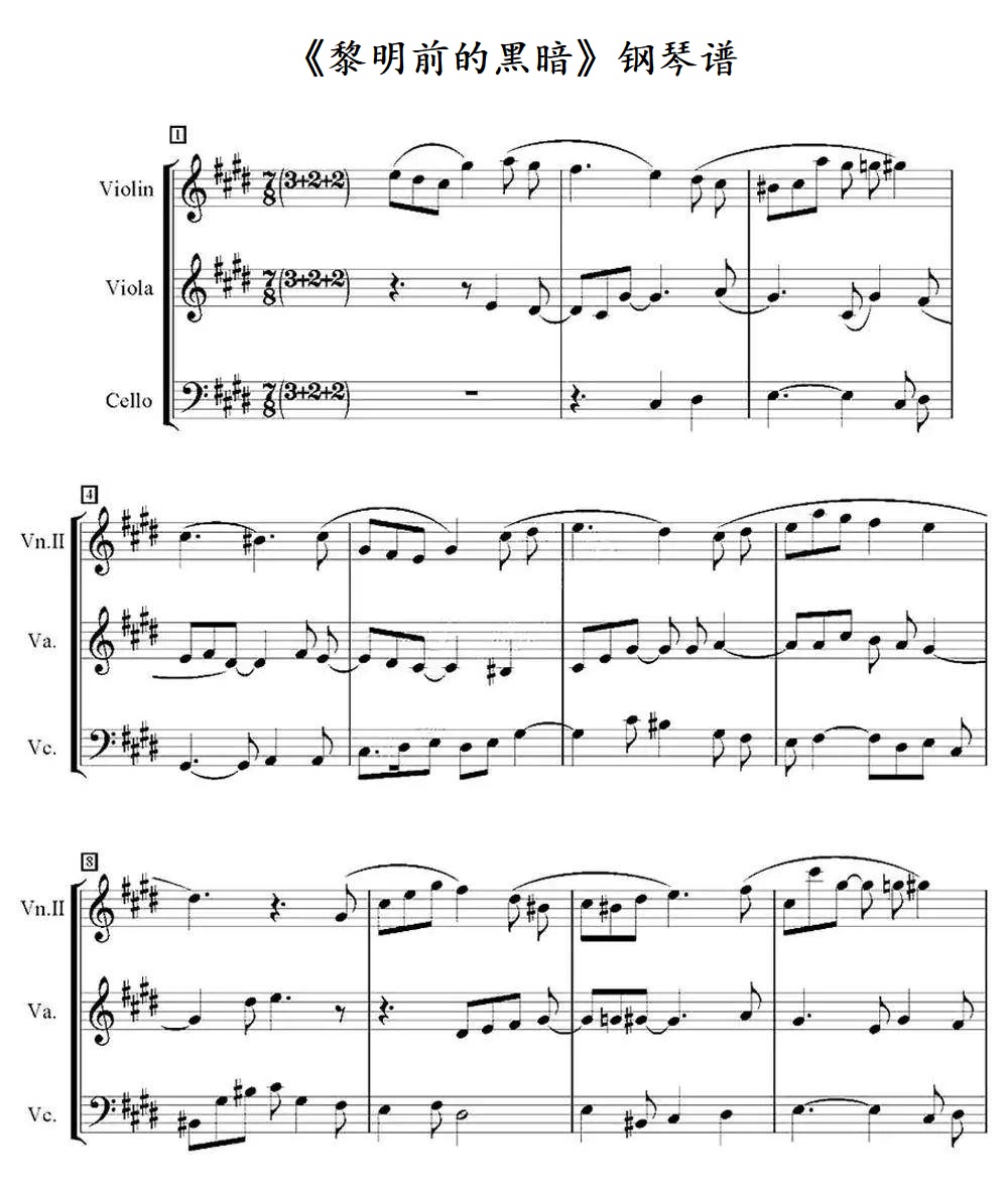 《黎明前的黑暗》钢琴谱,采用E调指法编配,共有2张高清图谱,免翻页排版设计。...