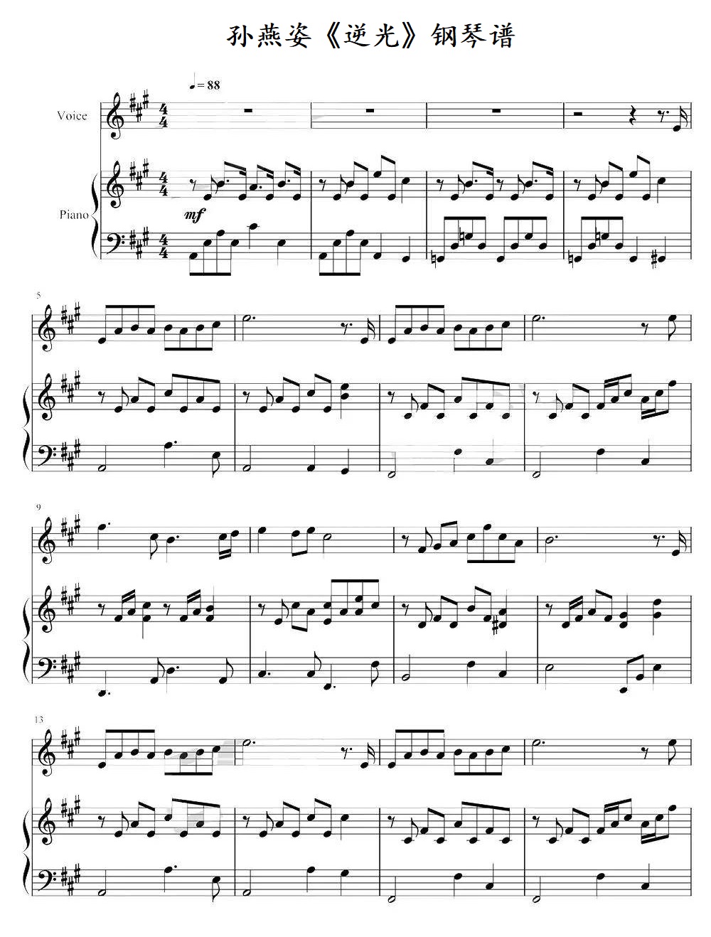 钢琴孙燕姿《逆光》钢琴谱