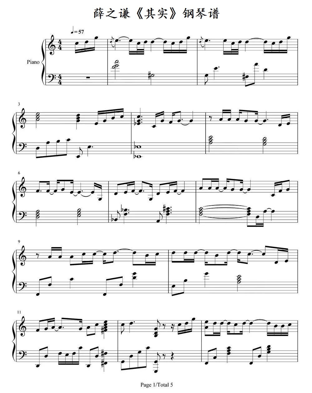 薛之谦《其实》钢琴谱...