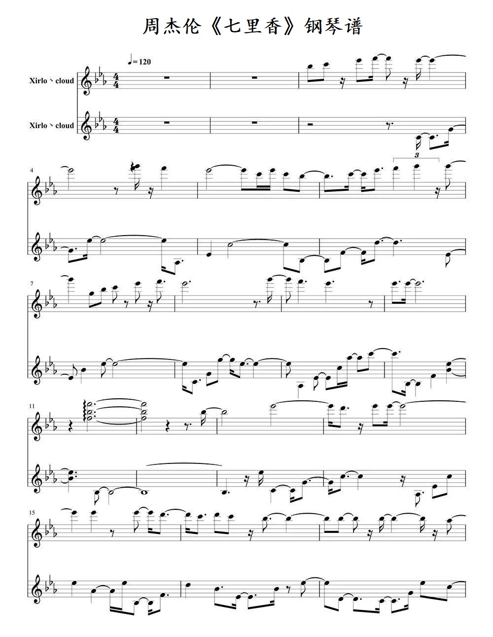 钢琴周杰伦《七里香》钢琴谱