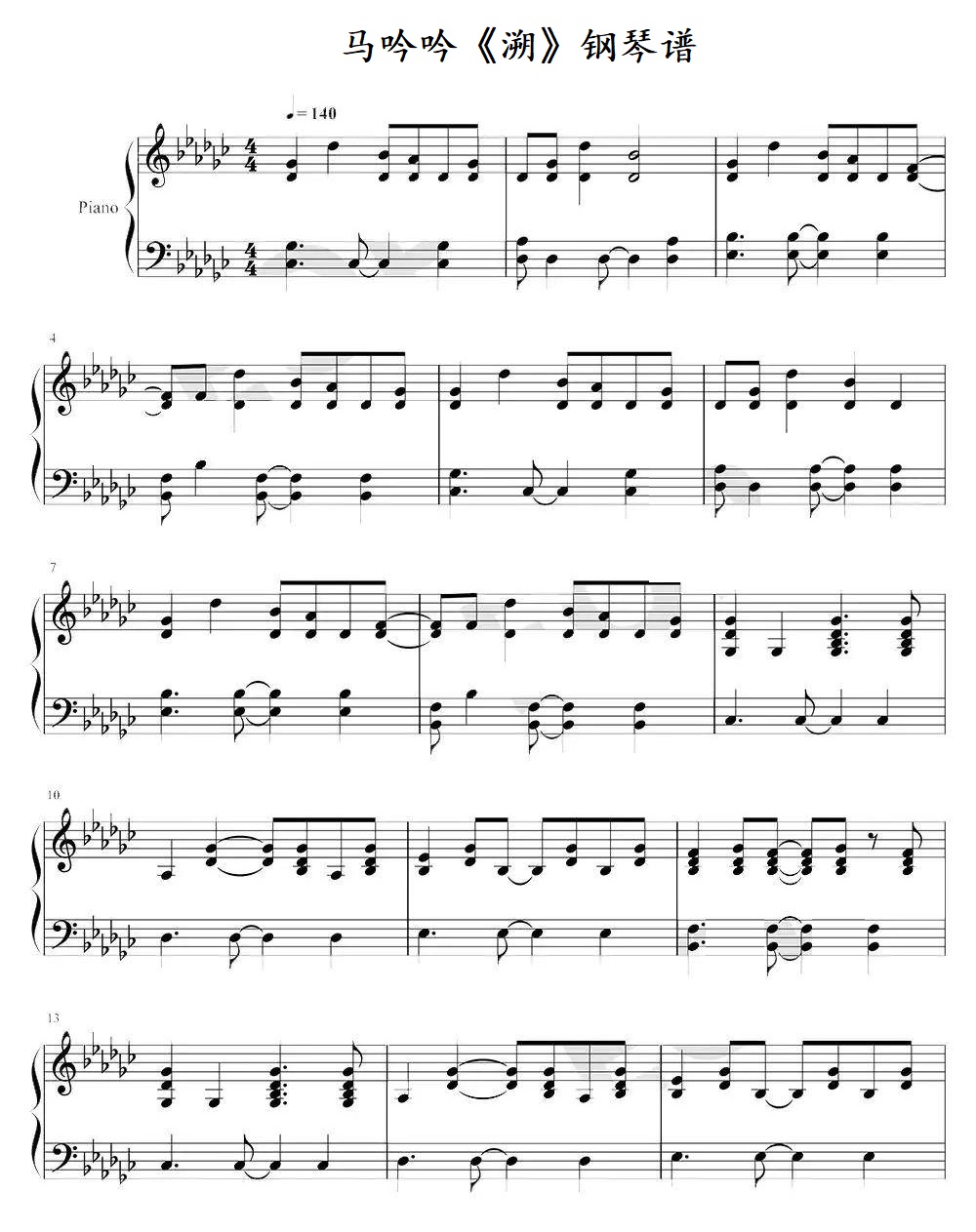 马吟吟《溯》钢琴谱...