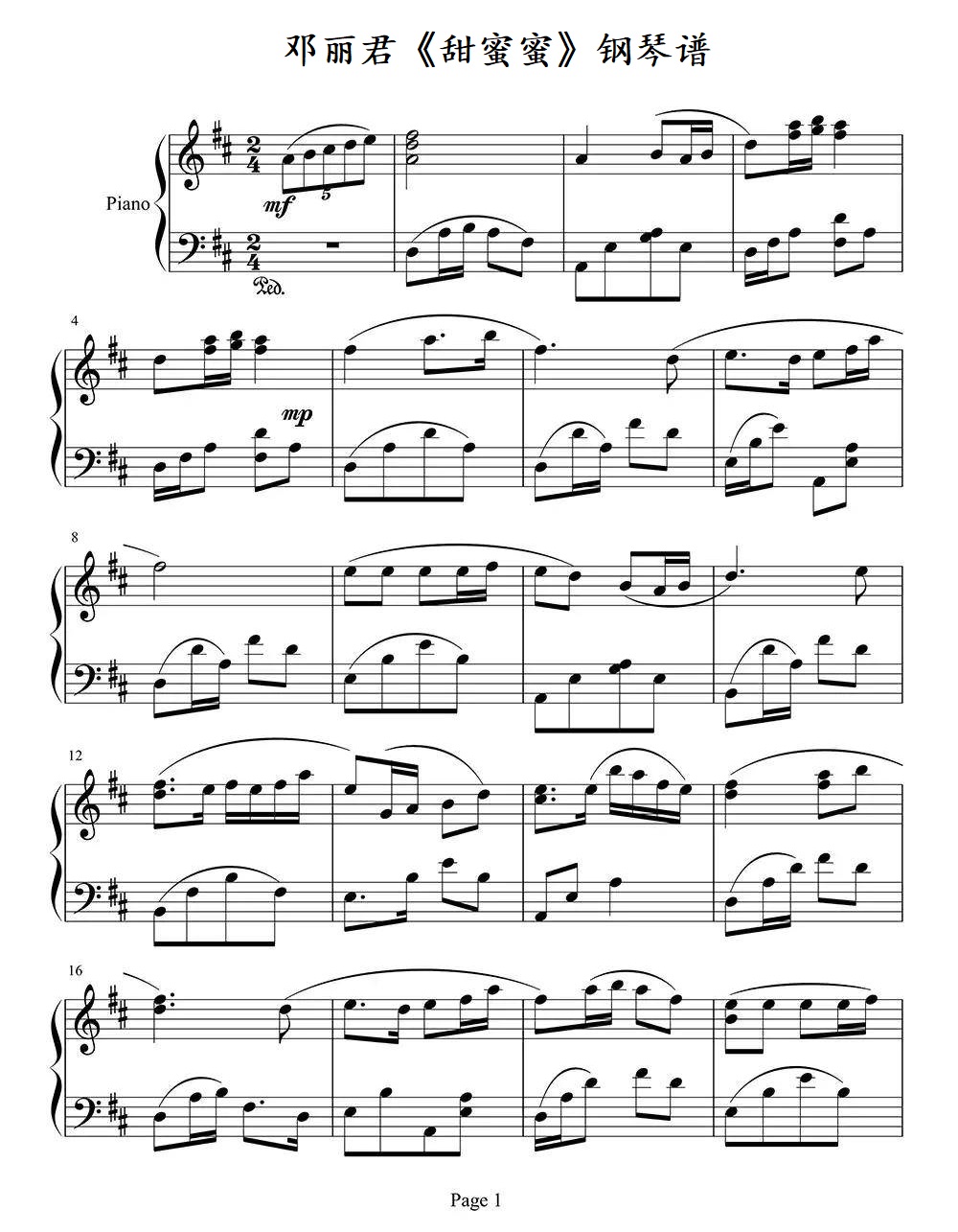 钢琴邓丽君《甜蜜蜜》钢琴谱