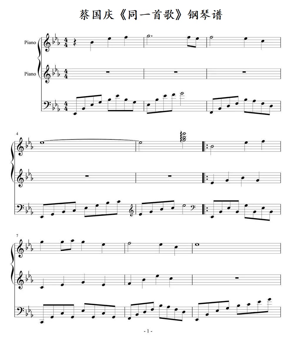 蔡国庆《同一首歌》钢琴谱...