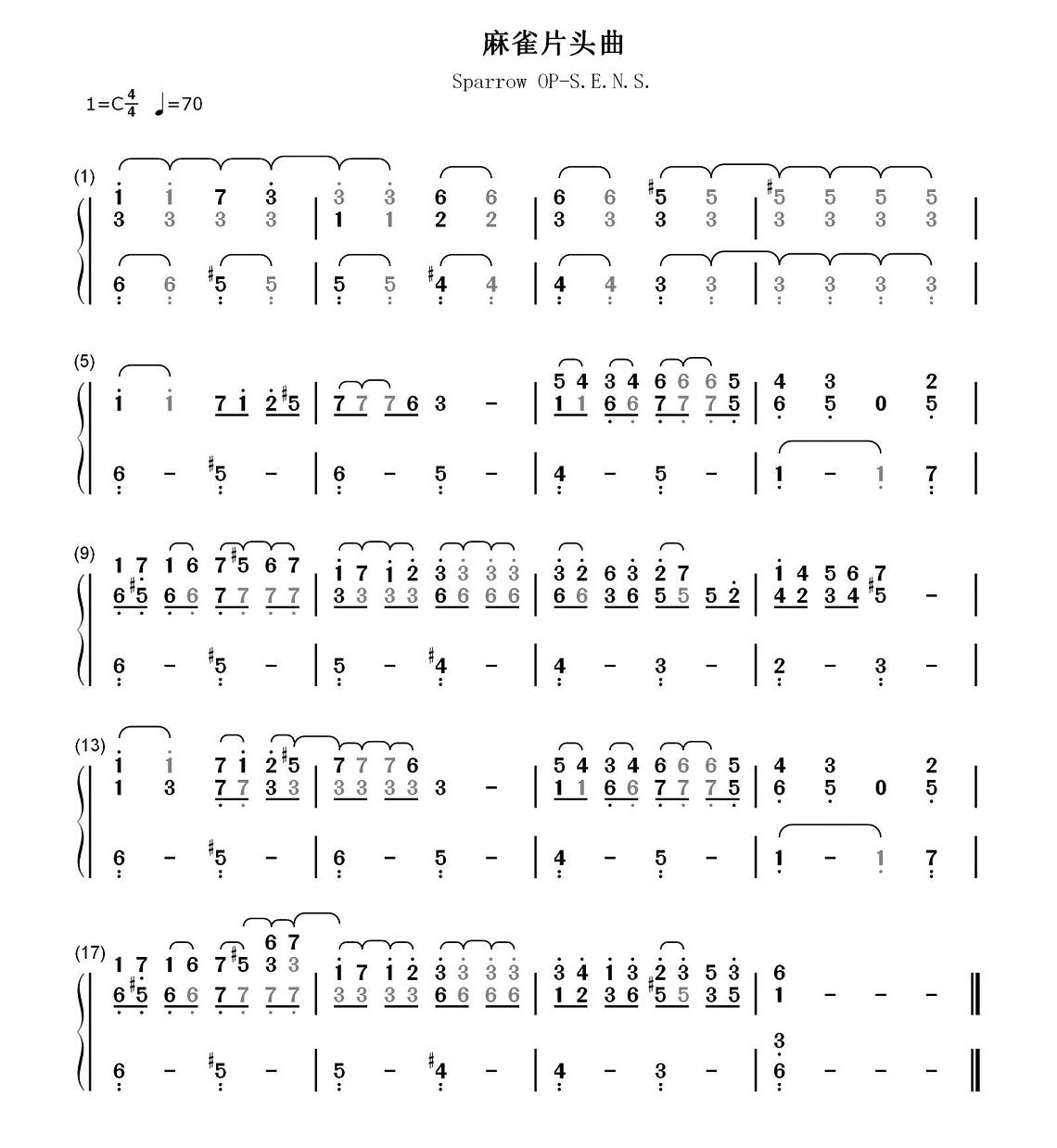 S.E.N.S神思者电视剧《麻雀》片头曲钢琴谱...