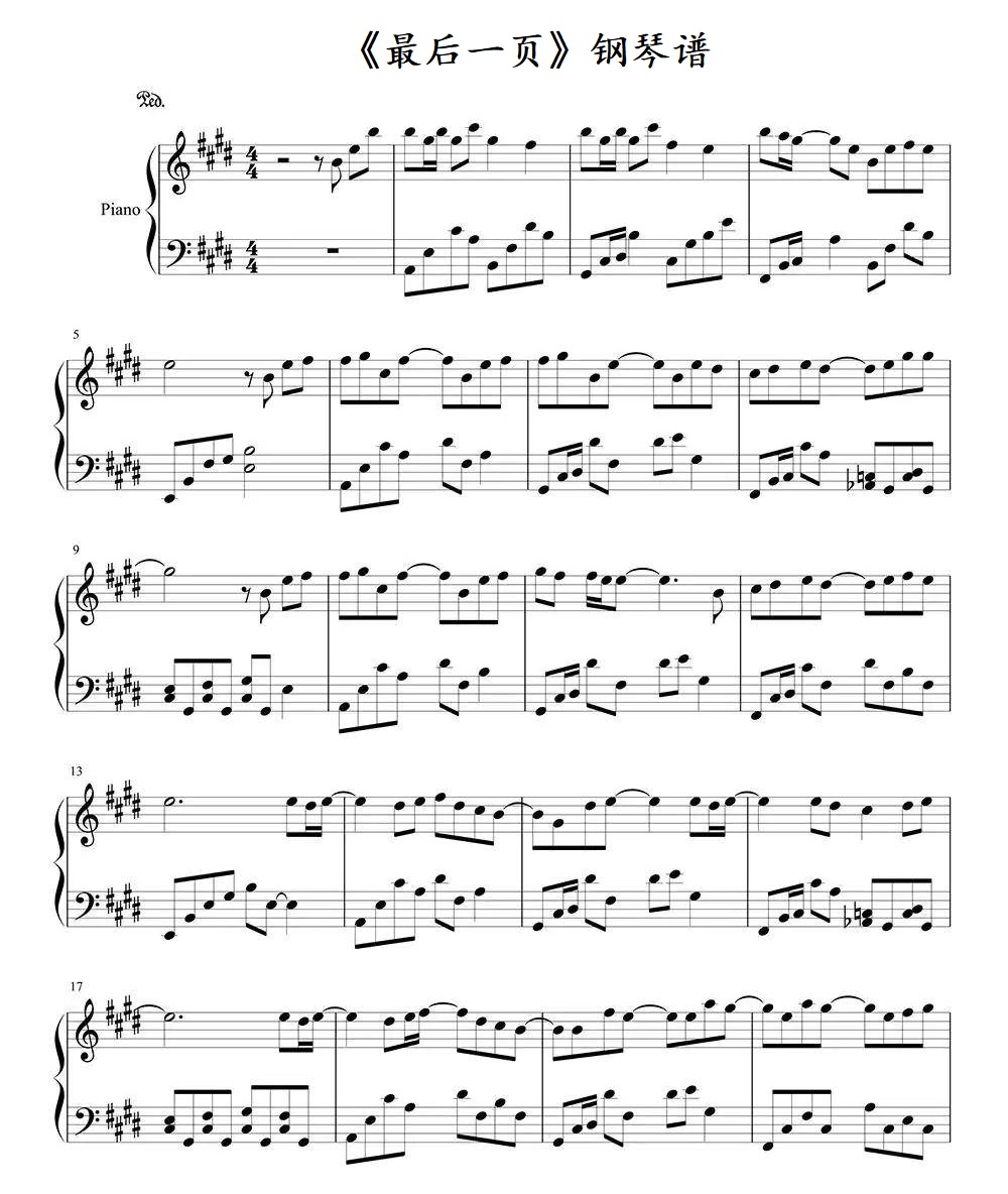 钢琴《熊猫人》片尾曲《最后一页》钢琴谱