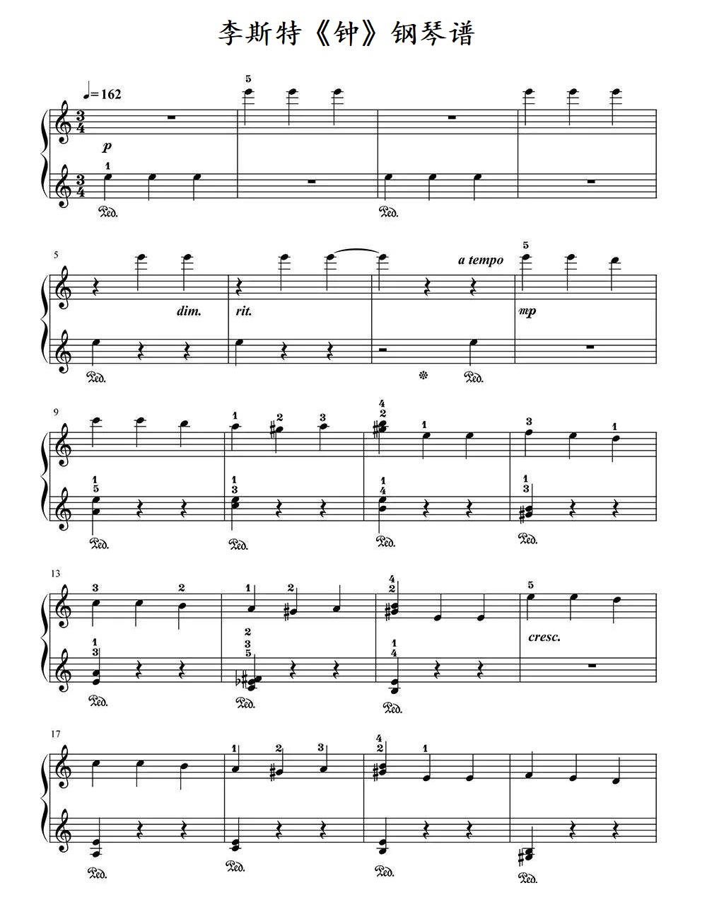钢琴李斯特《钟》钢琴谱