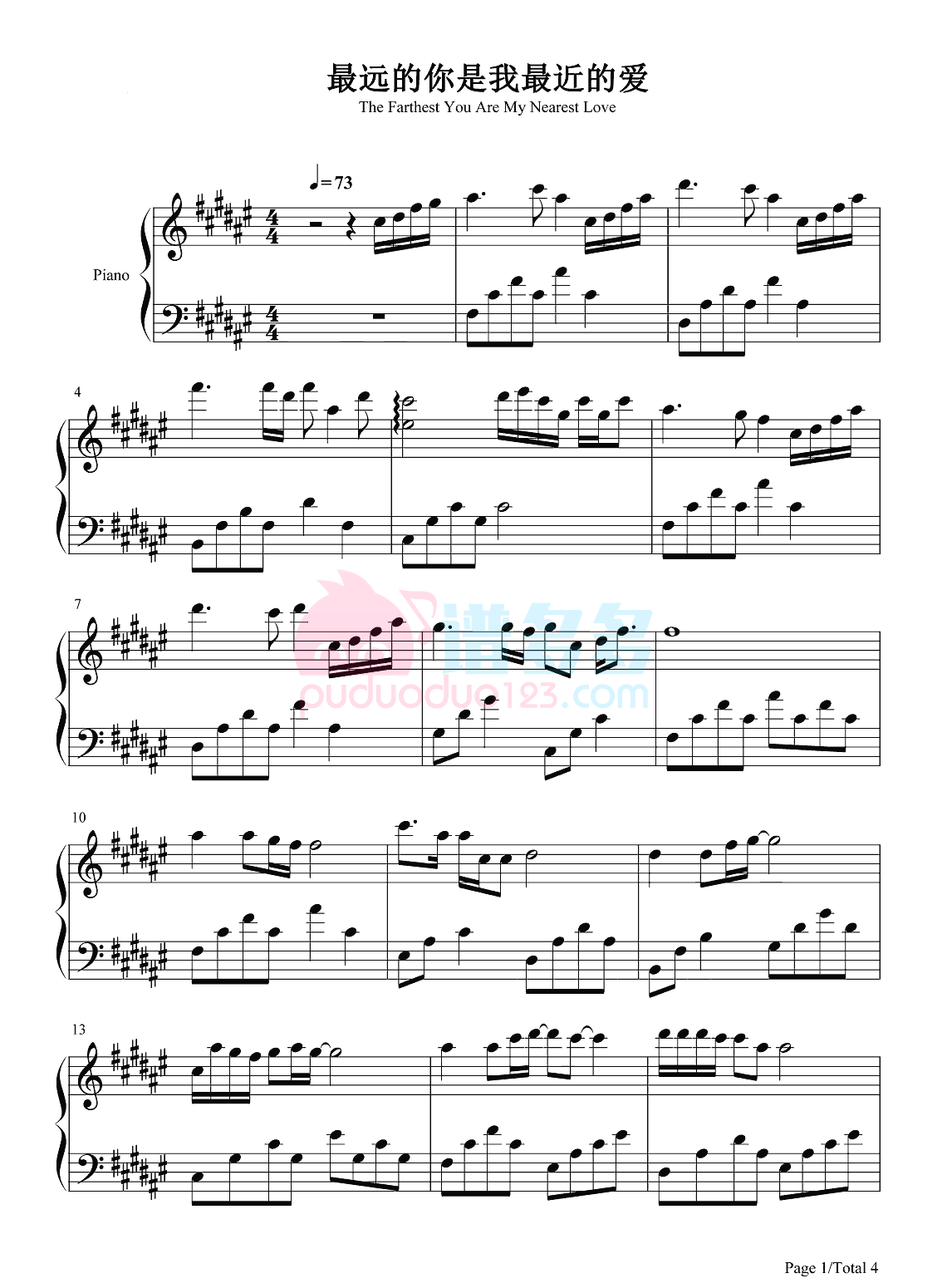 钢琴车继玲《最远的你是我最近的爱》钢琴谱