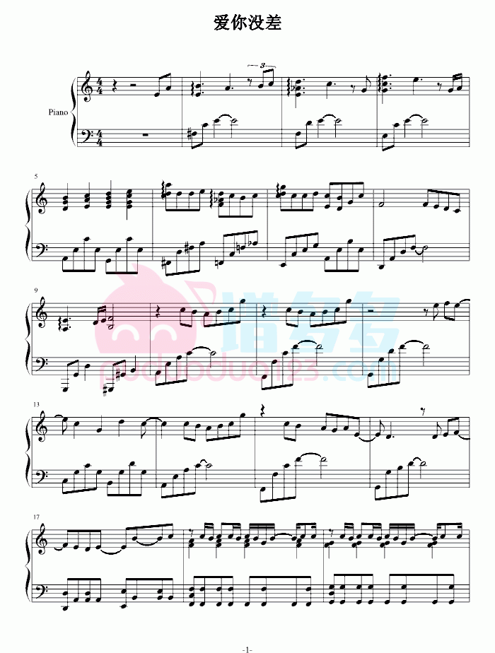 周杰伦《爱你没差》钢琴谱,采用C调指法编配,共有5张高清图谱。...