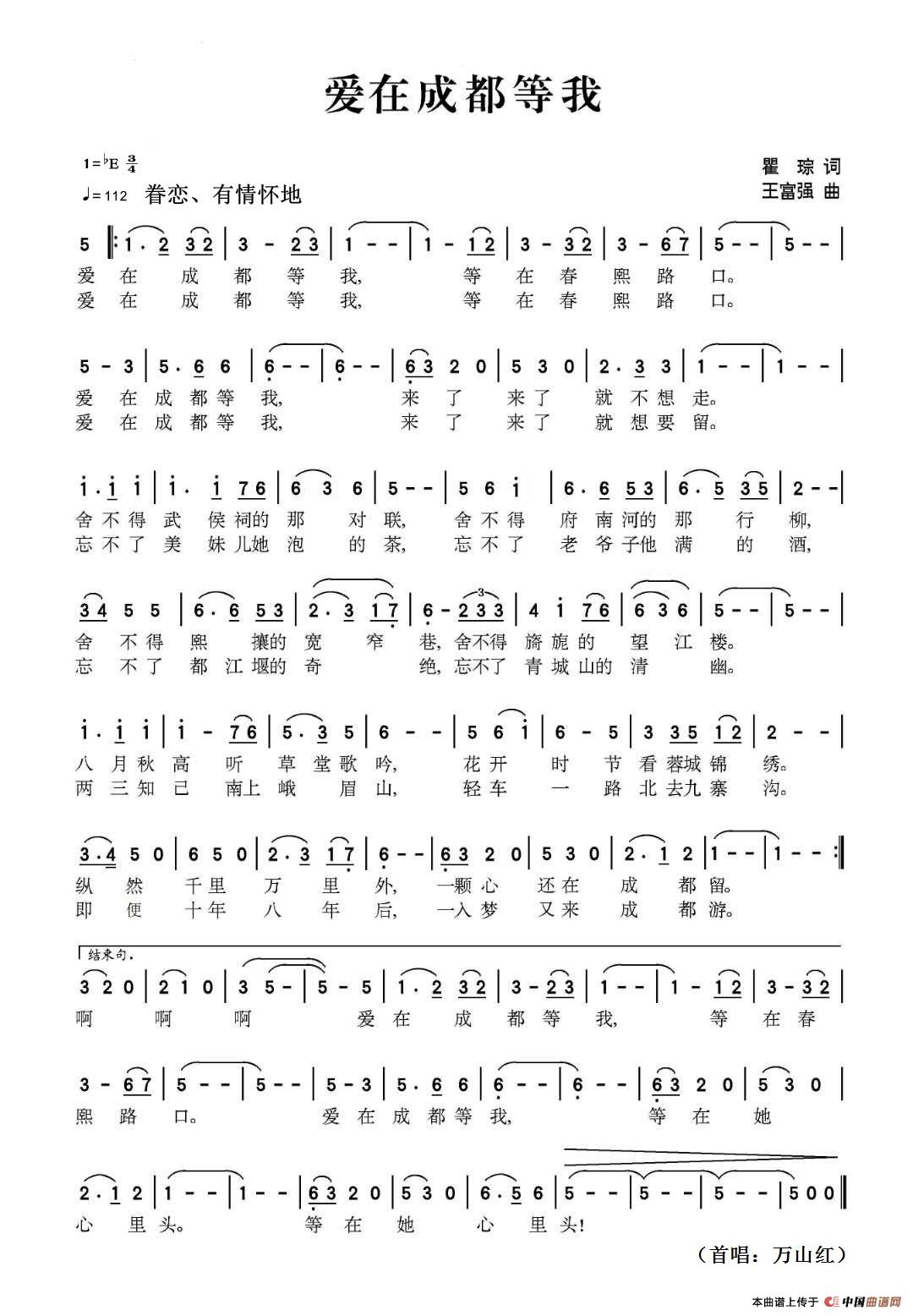 爱在成都等我(瞿琮作词,王富强作曲,万山红演唱)...