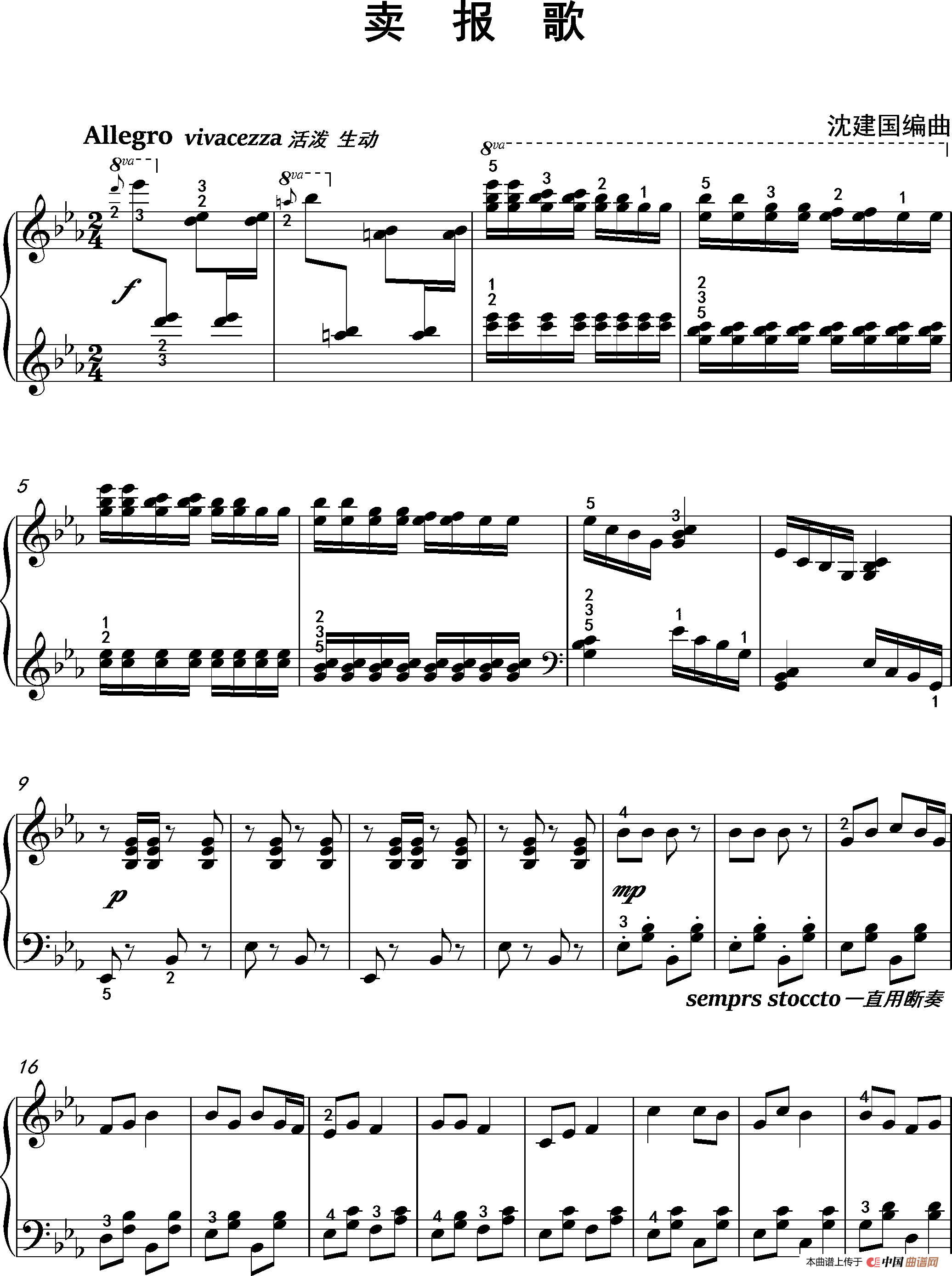 《茉莉花(简版)(沈建国钢琴版)》钢琴谱,采用Eb调指法编配,共有2张高清图谱,免翻页排版设计。...