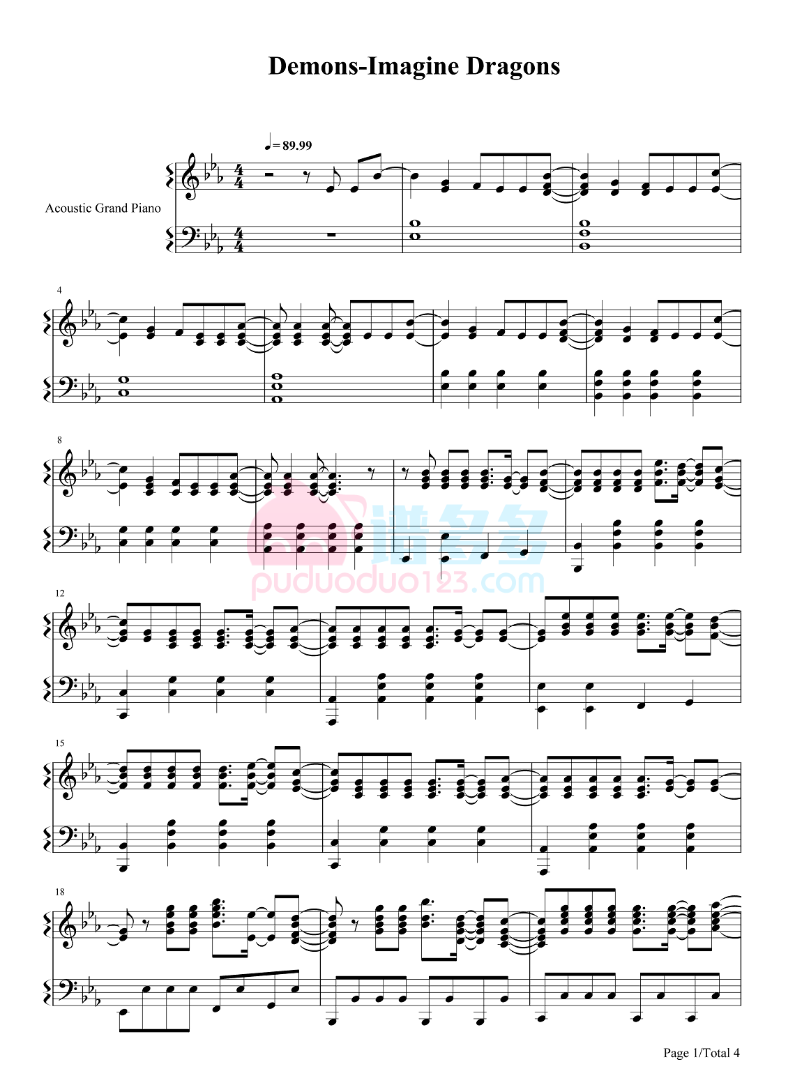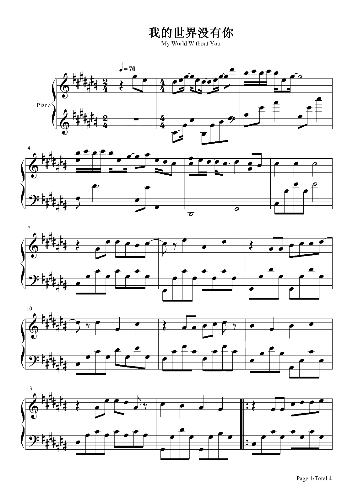 苏晗《我的世界没有你》钢琴谱,采用C调指法编配,共有4张高清图谱。...