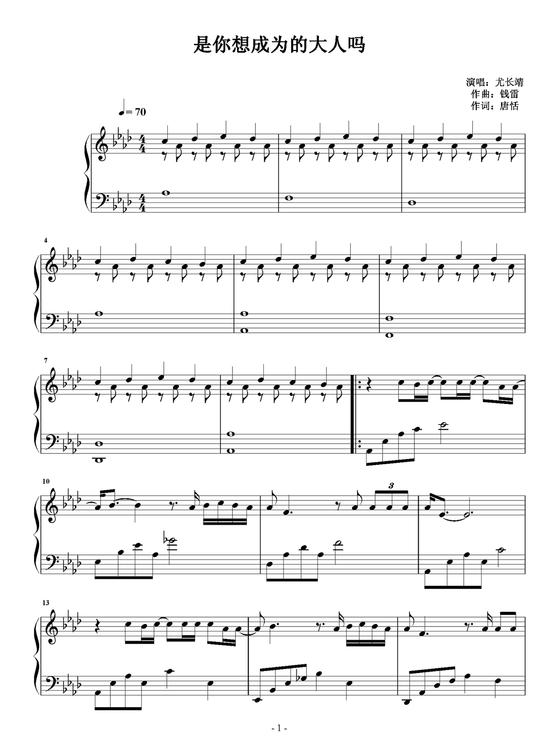 钢琴尤长靖《是你想成为的大人吗》钢琴谱