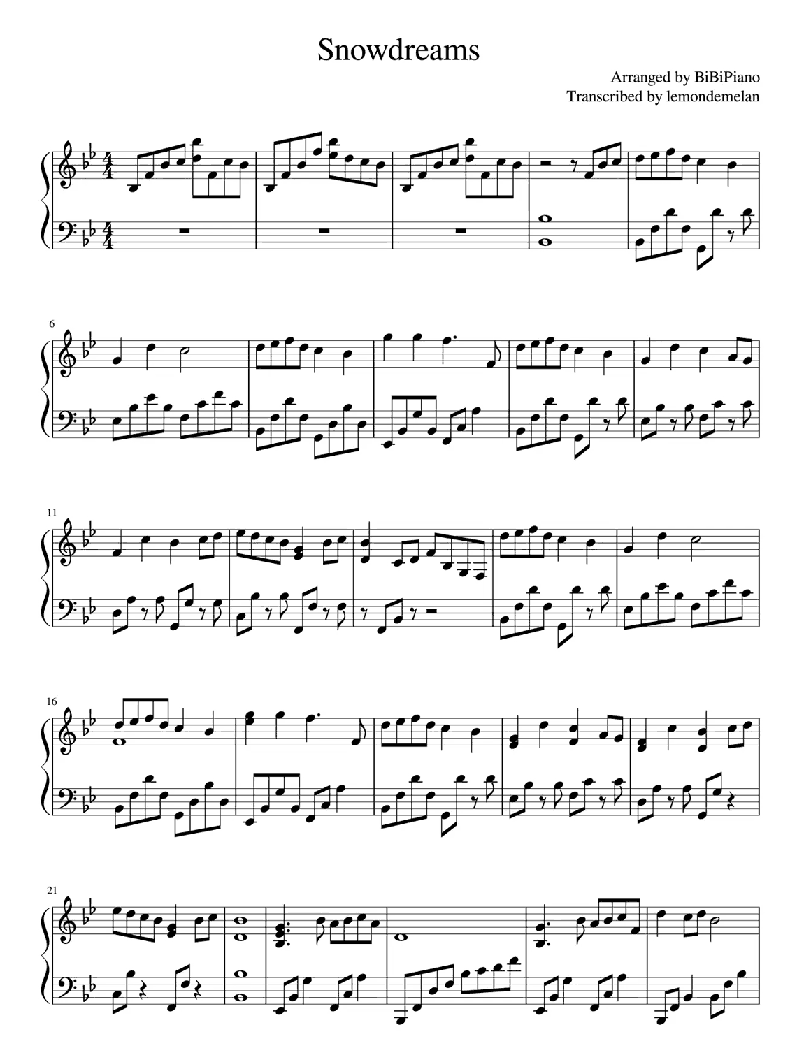 班得瑞经典曲子《Snowdreams》钢琴谱,共3张高清图片五线谱,由BiBiPiano改编。Snowdreams雪之梦(又译作《雪的梦幻》),这首曲子的旋律清新自然,富于变幻,饱含情感,愉悦而略带哀伤。...