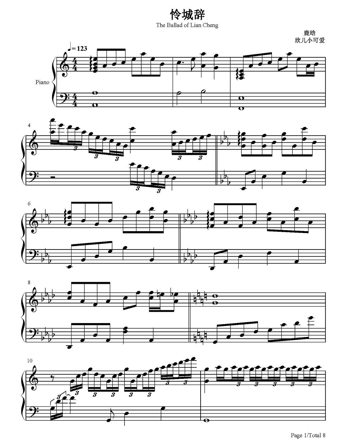 钢琴鹿晗《怜城辞》钢琴谱(天官赐福第二季主题曲)