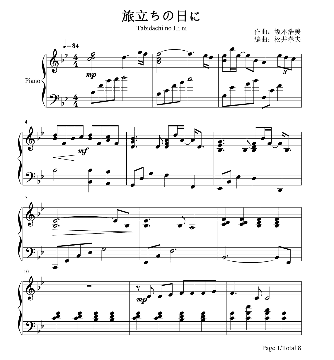 钢琴坂本浩美《旅立ちの日に》钢琴谱